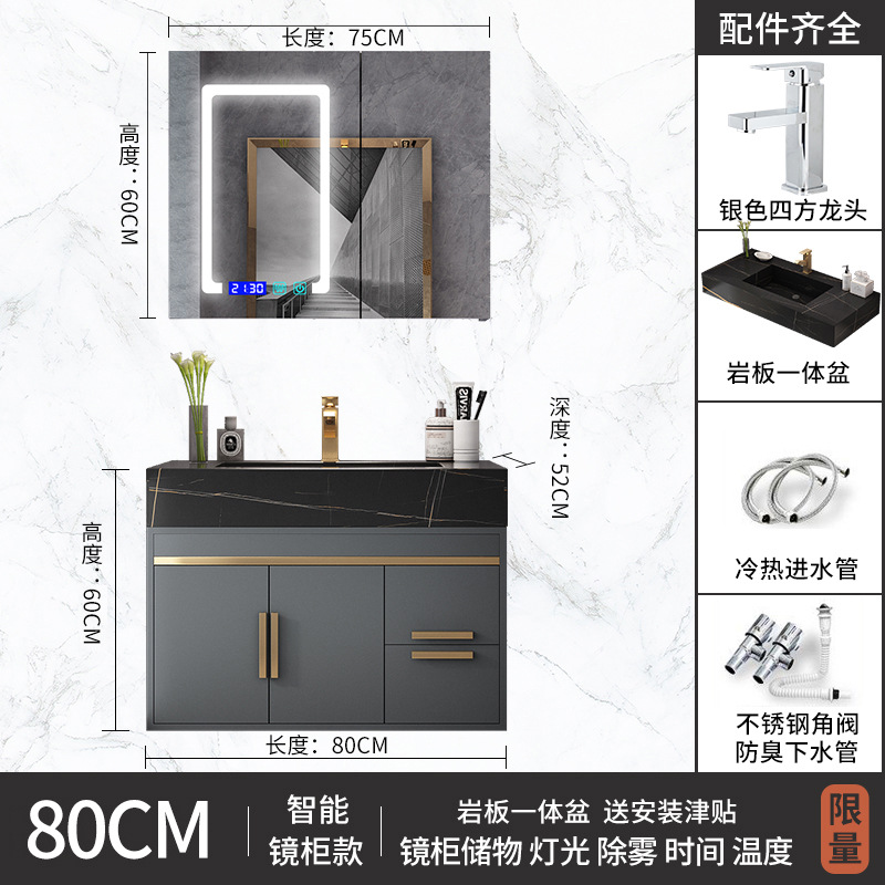 【80cm】岩板陶瓷台下盆+智能镜柜