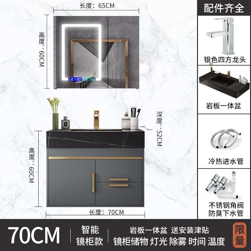 【70cm】岩板陶瓷台下盆+智能镜柜