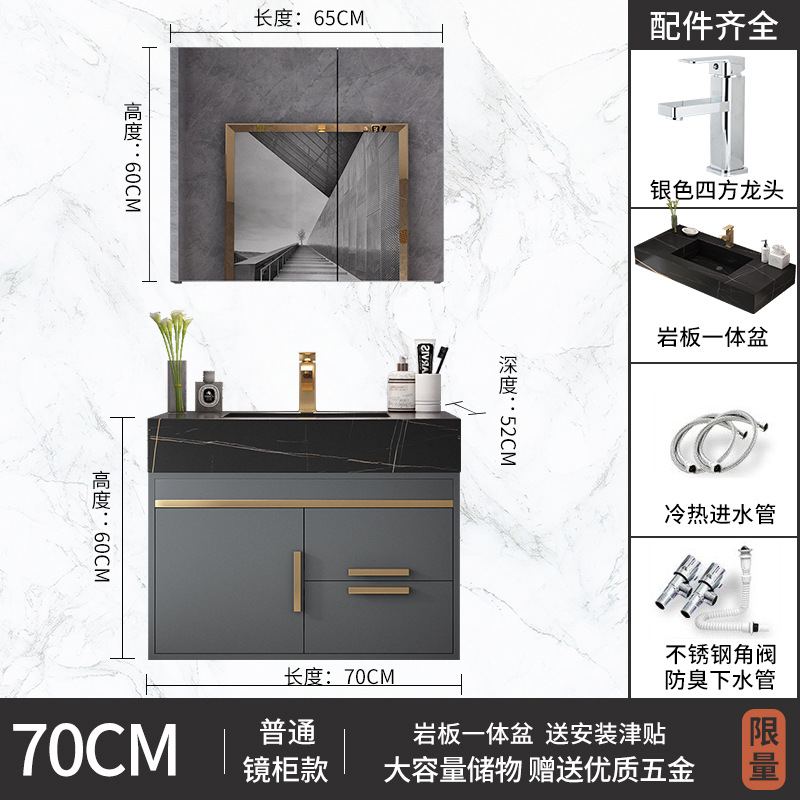 【70cm】岩板陶瓷台下盆+普通镜柜