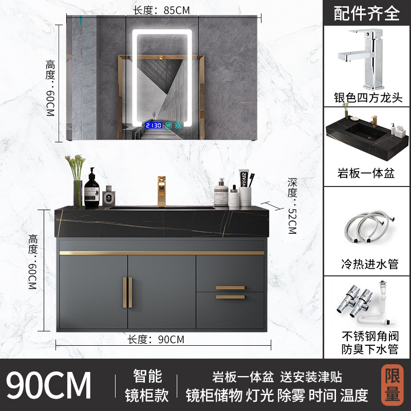 【90cm】岩板陶瓷台下盆+智能镜柜
