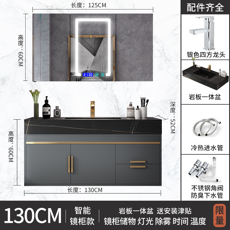 【130cm】岩板陶瓷台下盆+智能镜柜