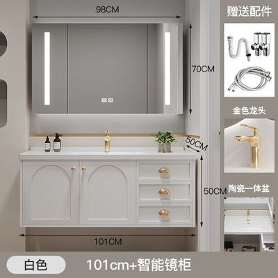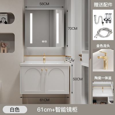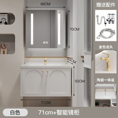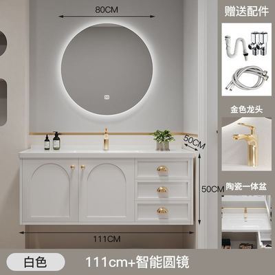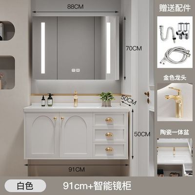 法式复古智能浴室柜组合一体陶瓷盆卫生间洗手台洗漱台洗脸盆池柜