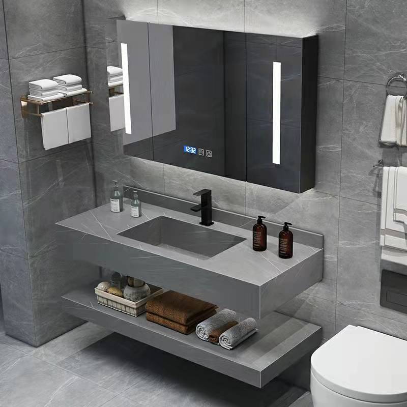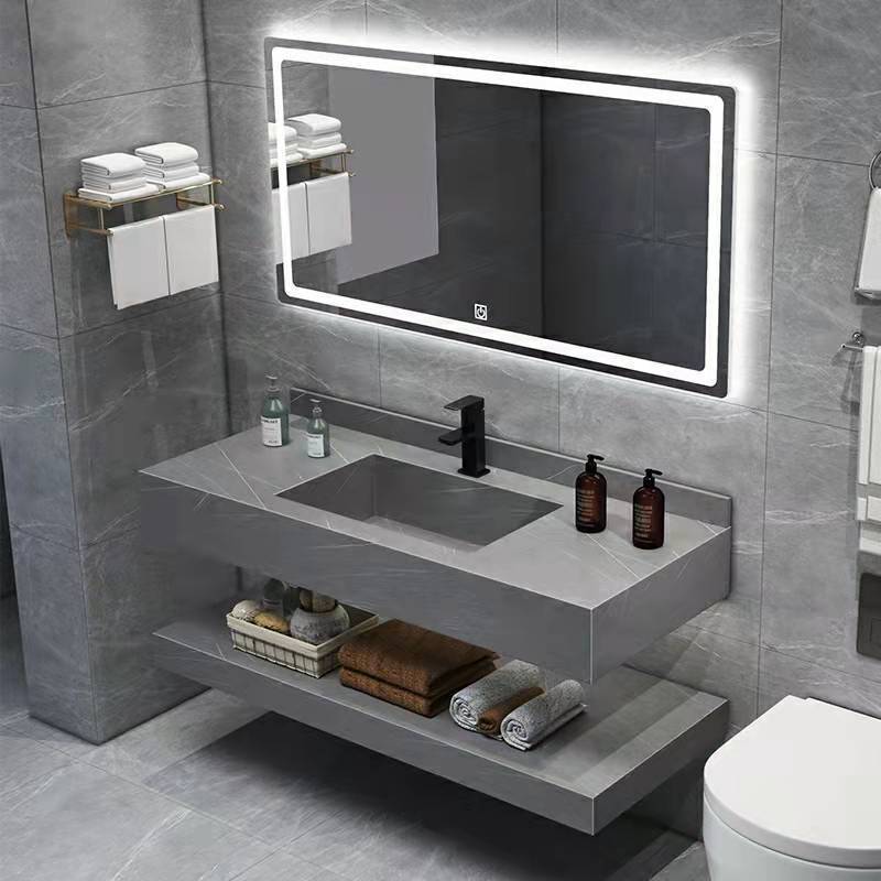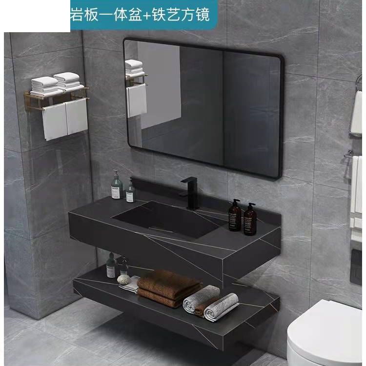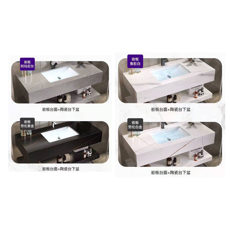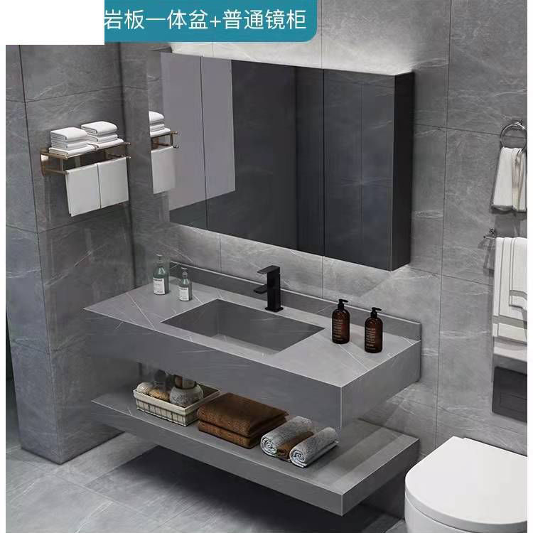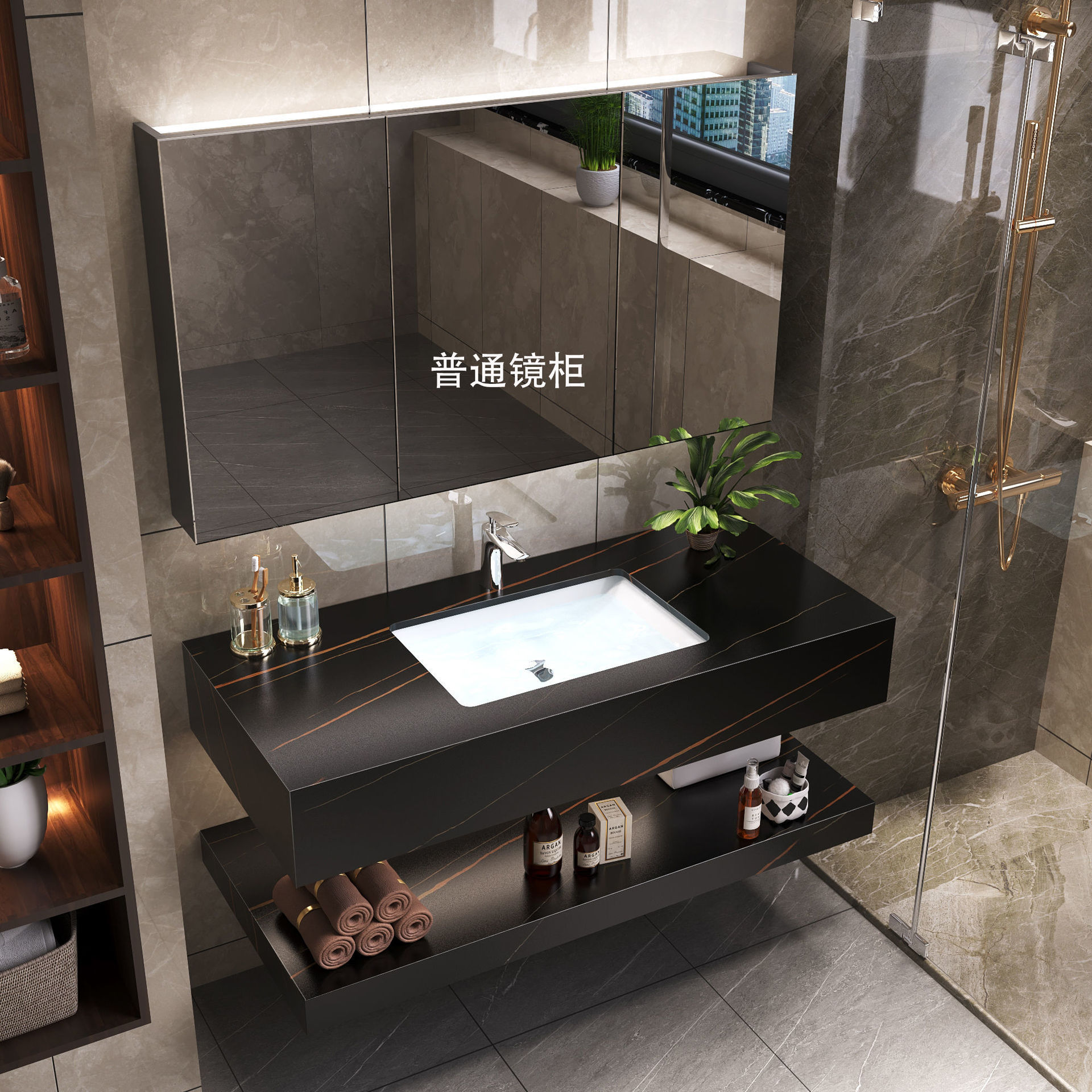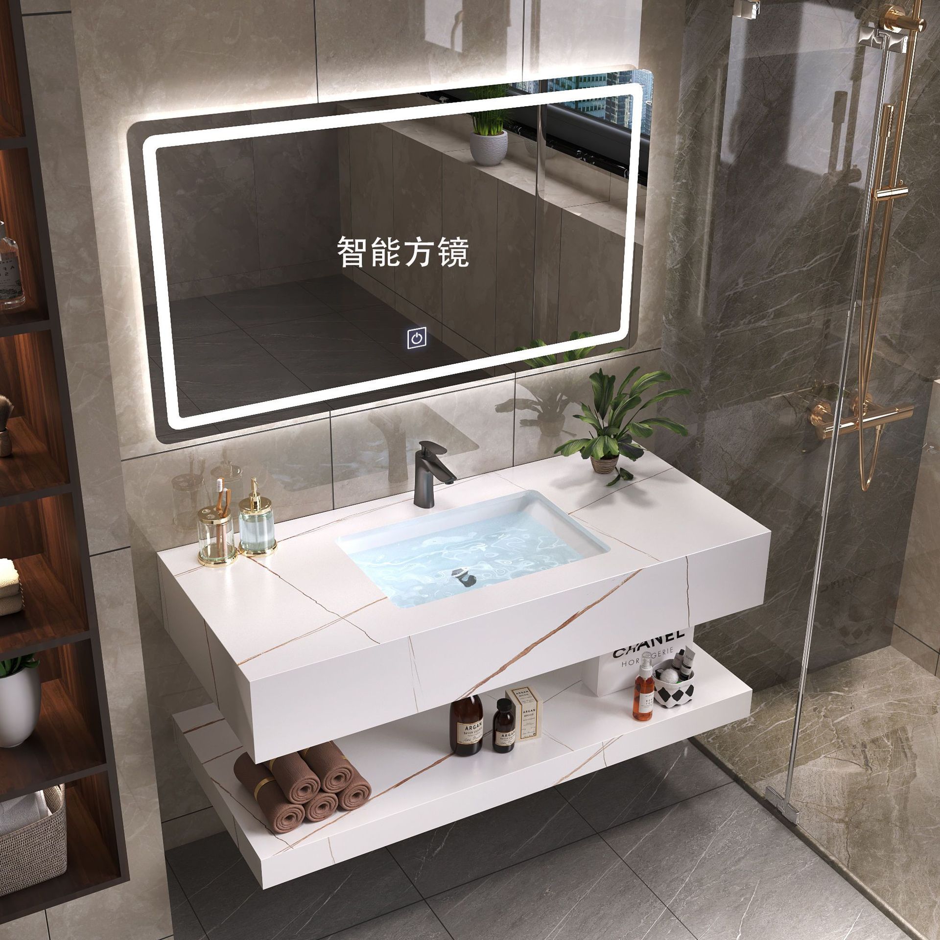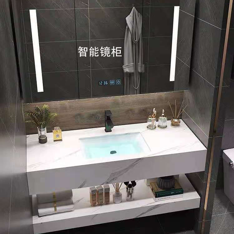 岩板一体盆无缝陶瓷盆浴室柜大理石洗手台智能镜储物柜卫生间漱口