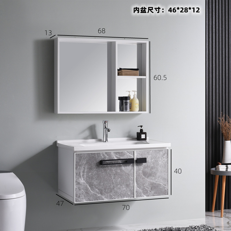 大理纹 70柜+普通镜柜+陶瓷盆(不含龙头)