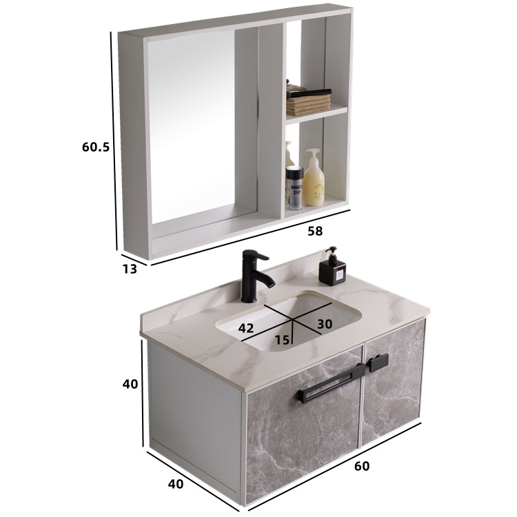 白灰 60柜+普通镜柜+岩板盆(不含龙头)