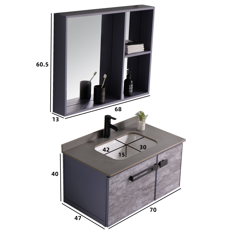 雾霾灰 70柜+普通镜柜+岩板盆(不含龙头)