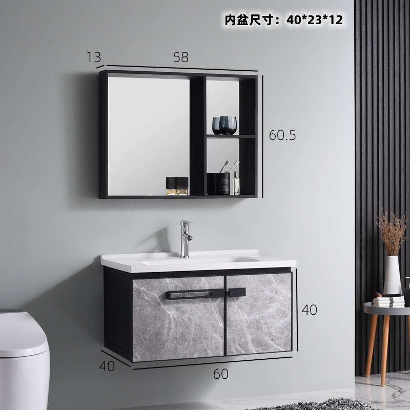 大理纹 60柜+普通镜柜+陶瓷盆(不含龙头)