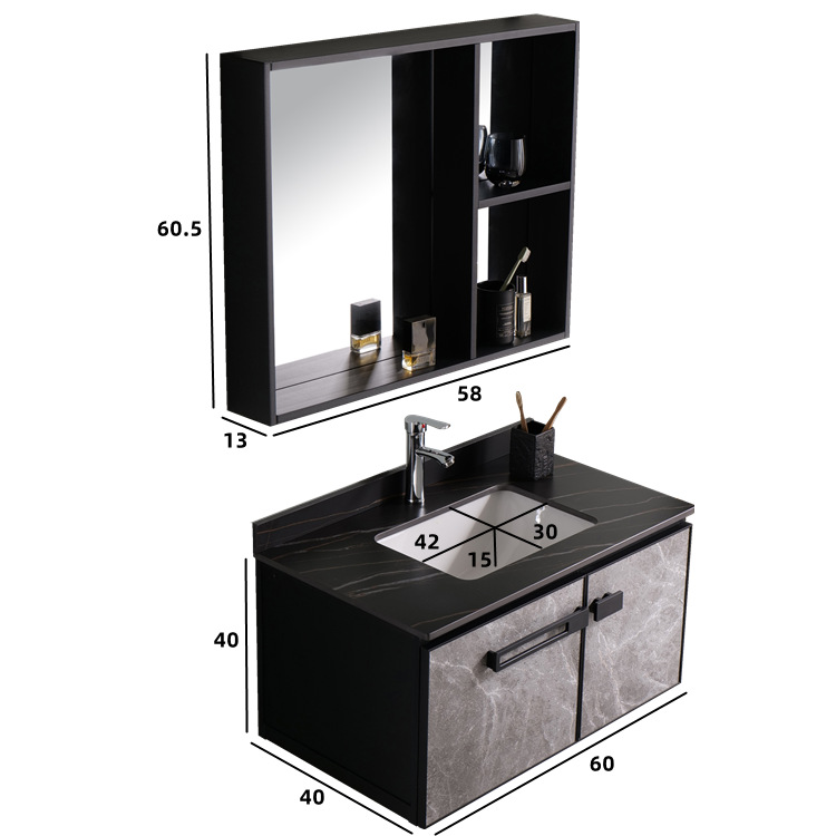 黑灰 60柜+普通镜柜+岩板盆(不含龙头)