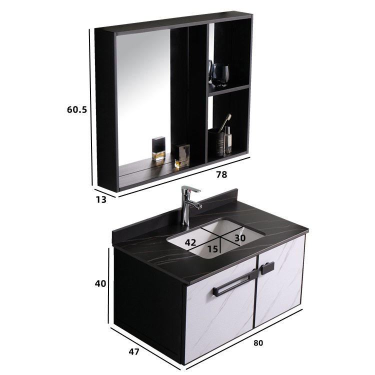黑灰 80柜+普通镜柜+岩板盆(不含龙头)