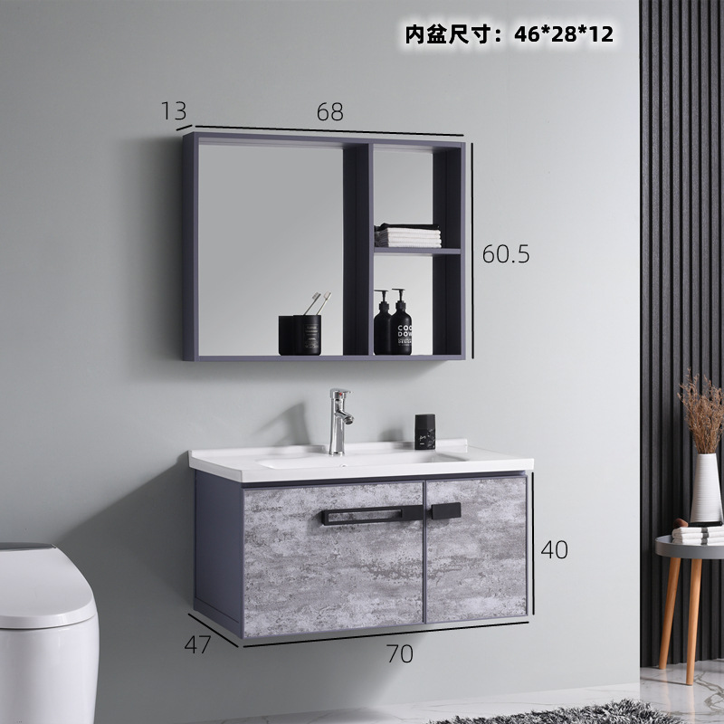 雾霾灰 70柜+普通镜柜+陶瓷盆(不含龙头)
