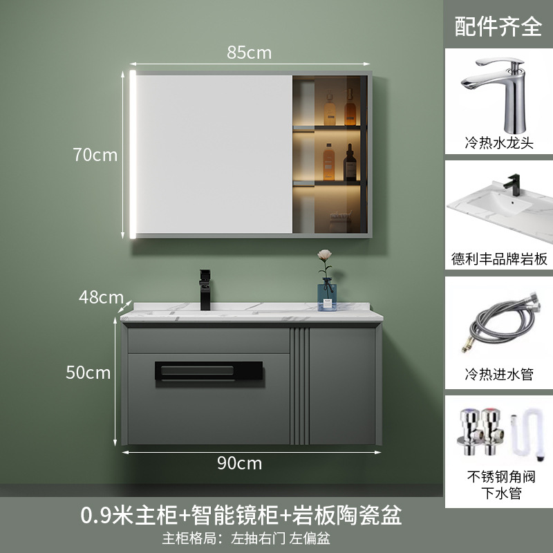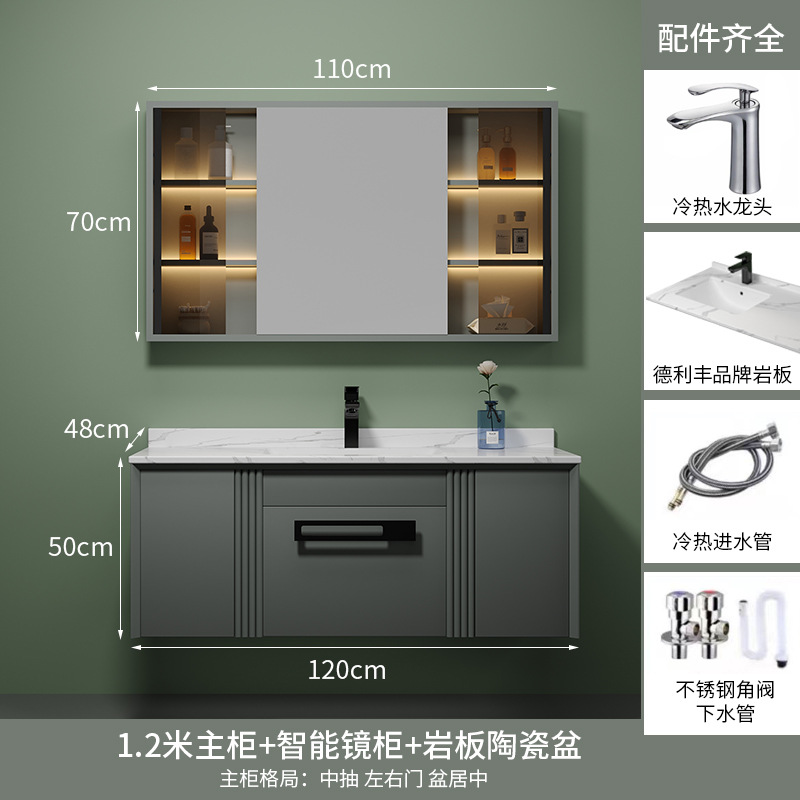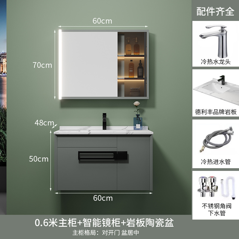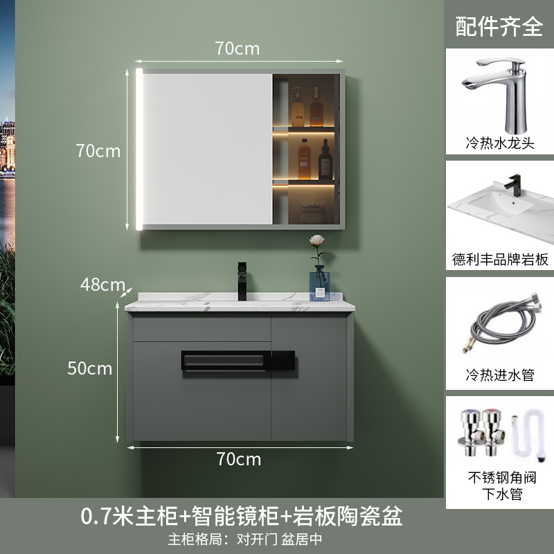 实木烤漆浴室柜组合现代轻奢简约岩板卫浴柜洗漱台一体陶瓷洗脸盆