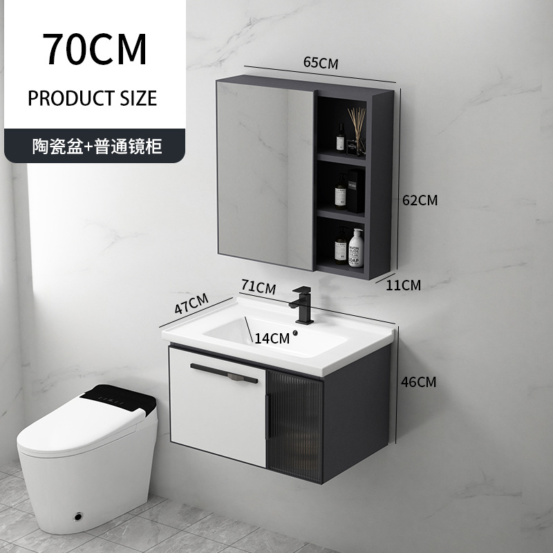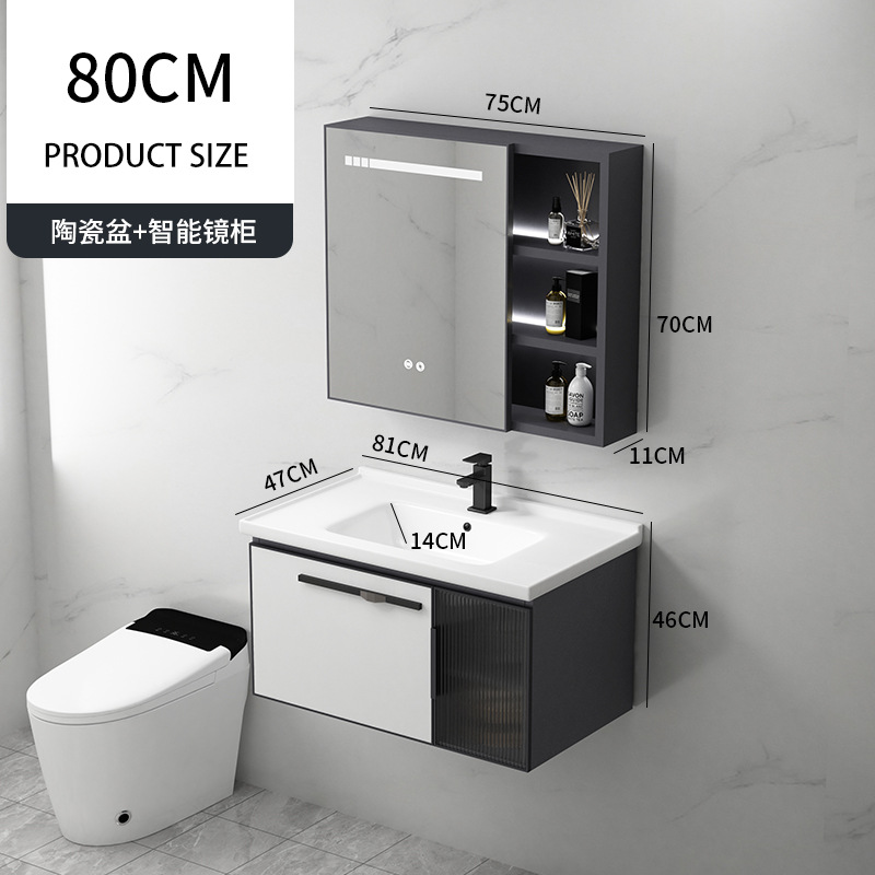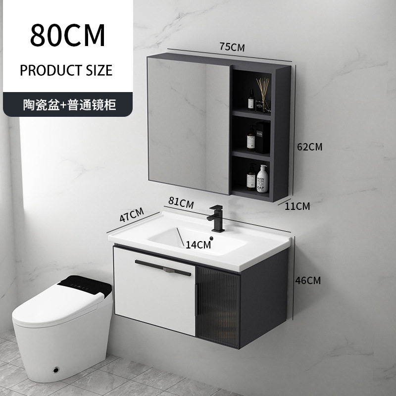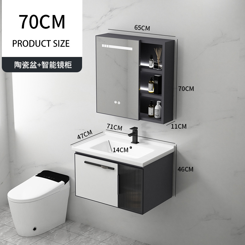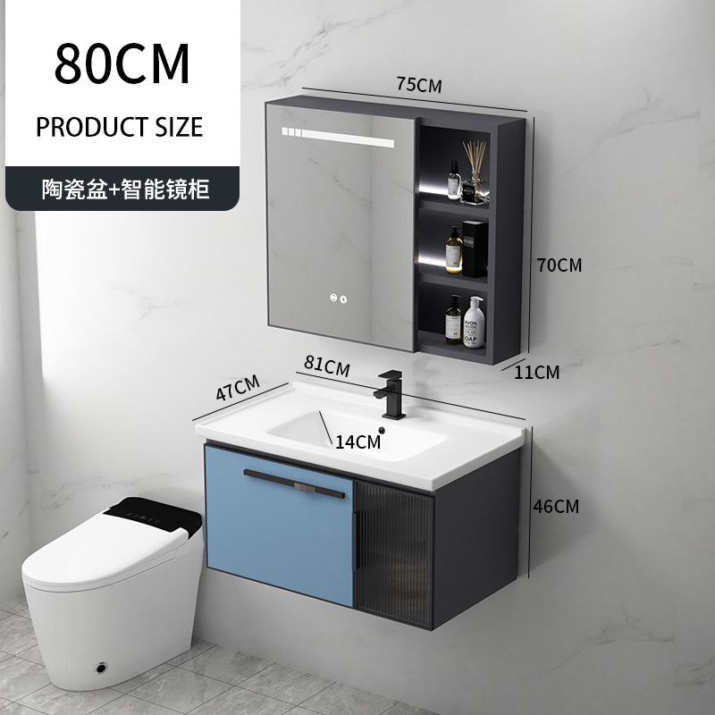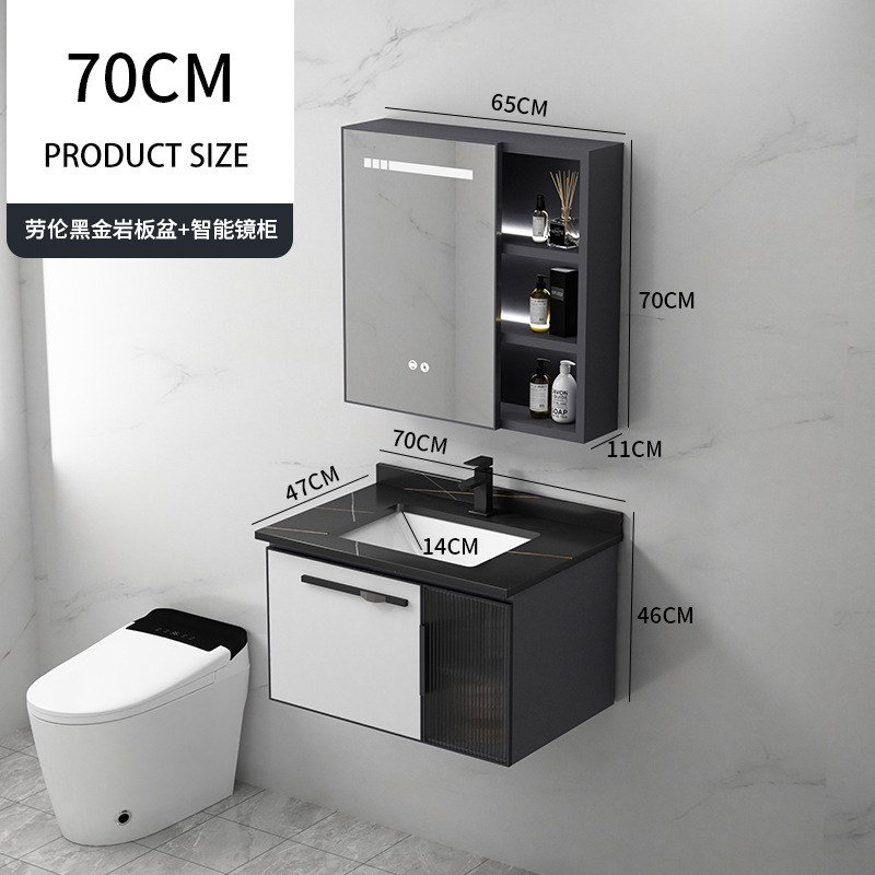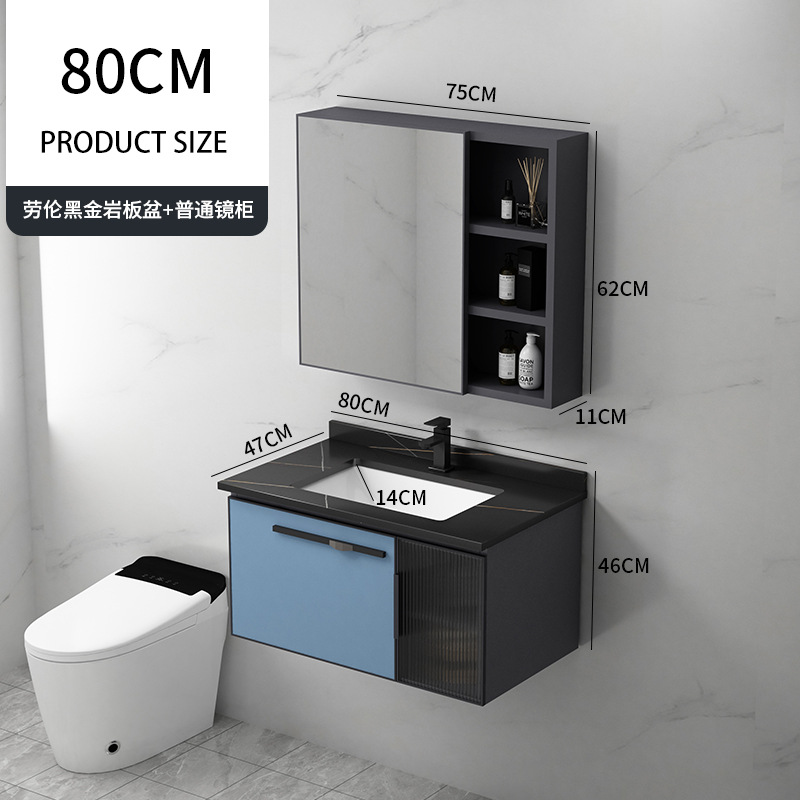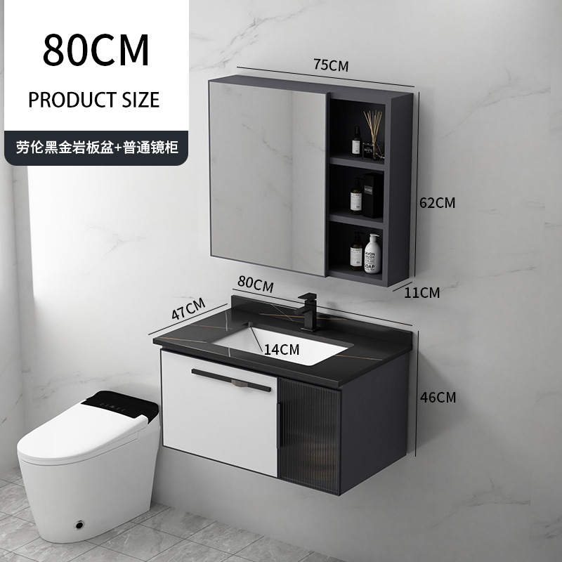 卫生间挂墙式洗手盆岩板浴室柜组合现代简约太空铝柜洗漱台洗脸盆