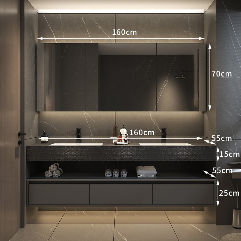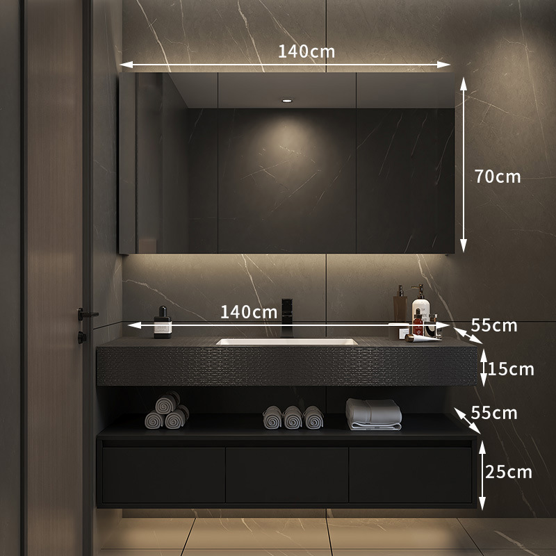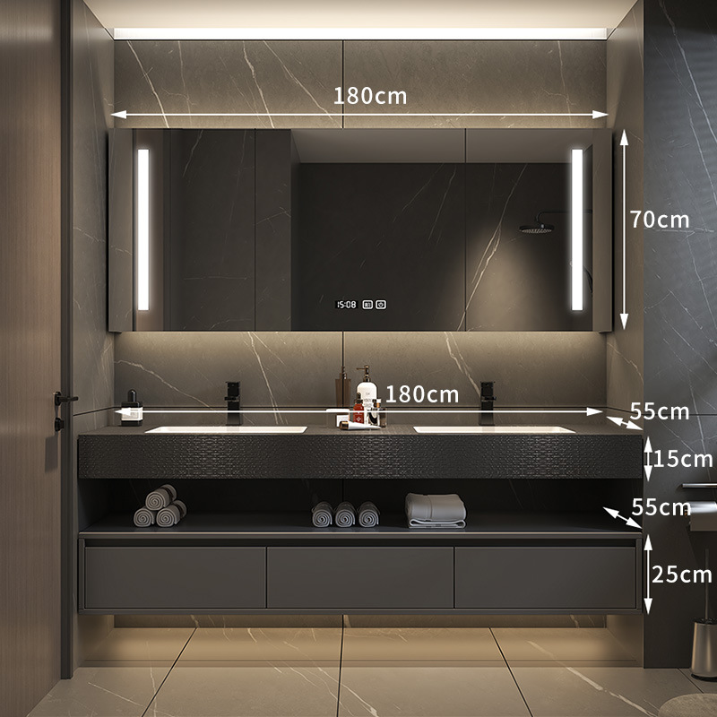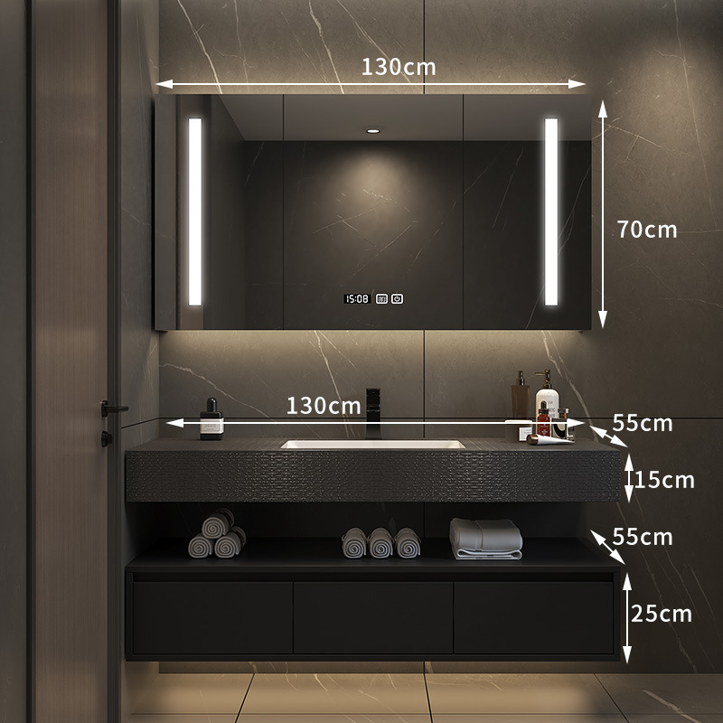 批发轻奢岩板一体浴室柜组合简约无缝拼接洗脸盆卫生间智能洗漱台
