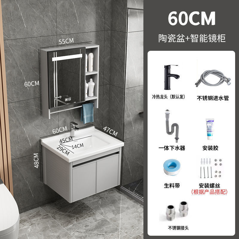 61cm+送龙头配件主柜陶瓷盆+智能圆镜