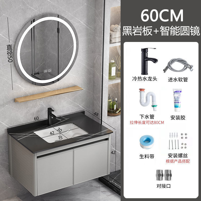 61cm+送龙头配件主柜黑岩板+智能圆镜