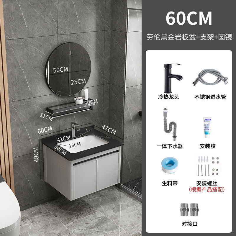 61cm+送龙头配件主柜黑岩板--圆镜带毛巾杆