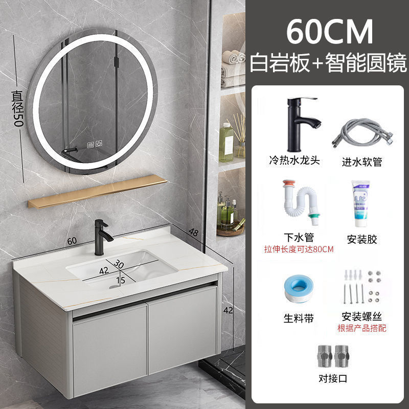 81cm+送龙头配件主柜白岩板+智能圆镜