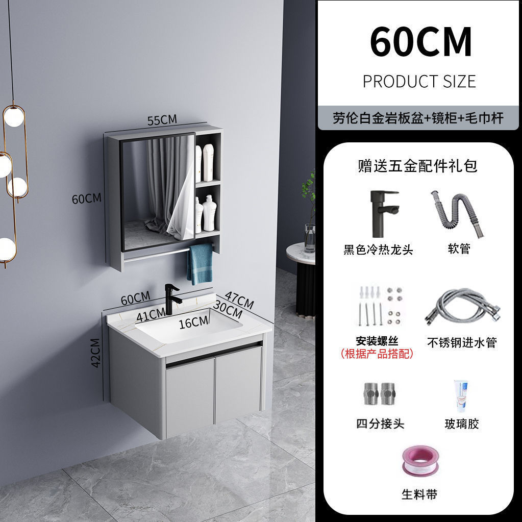 71cm+送龙头配件主柜灰岩板+镜柜--整套
