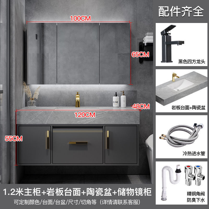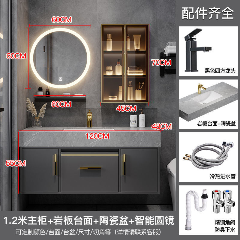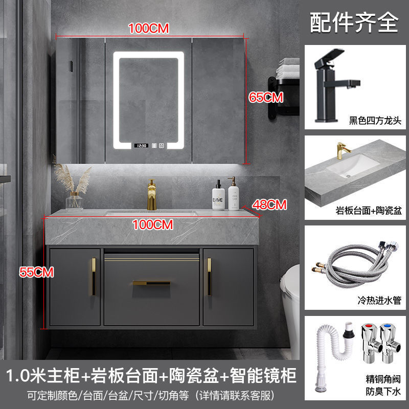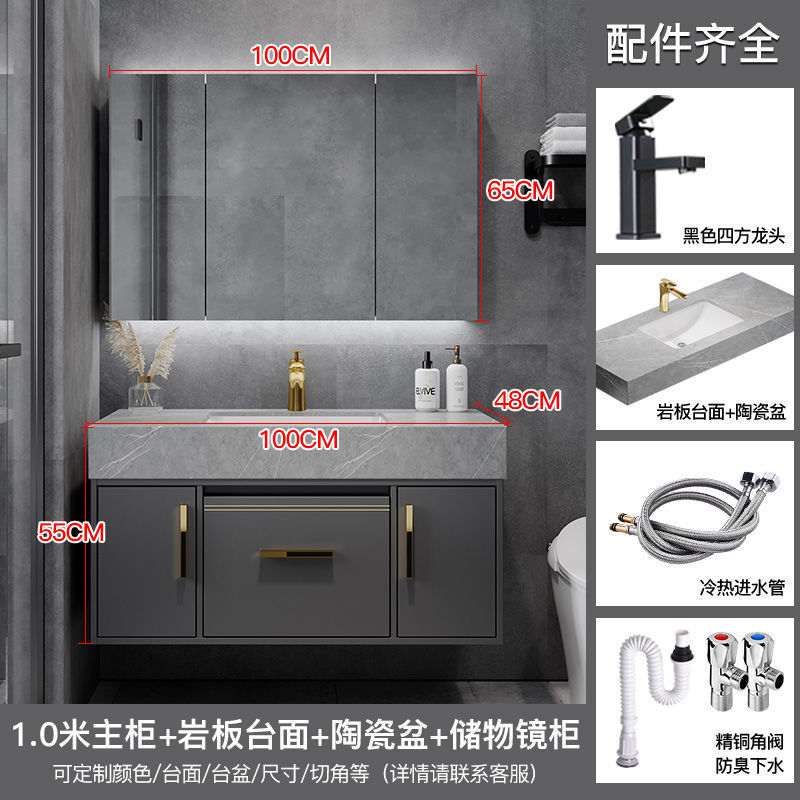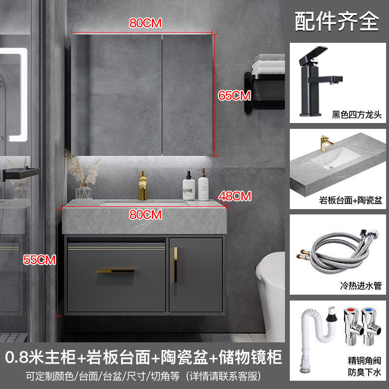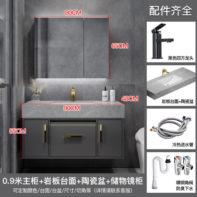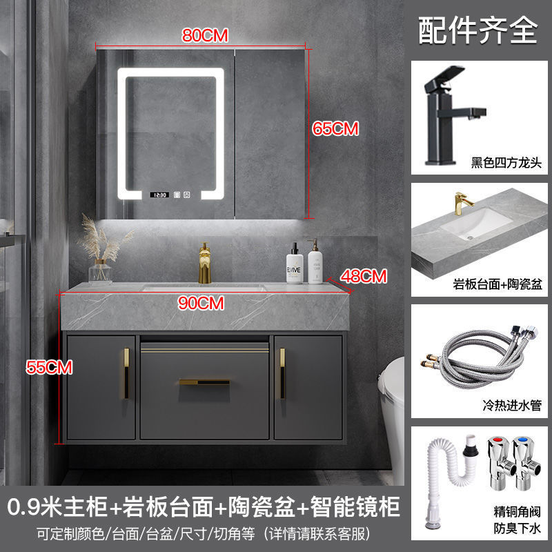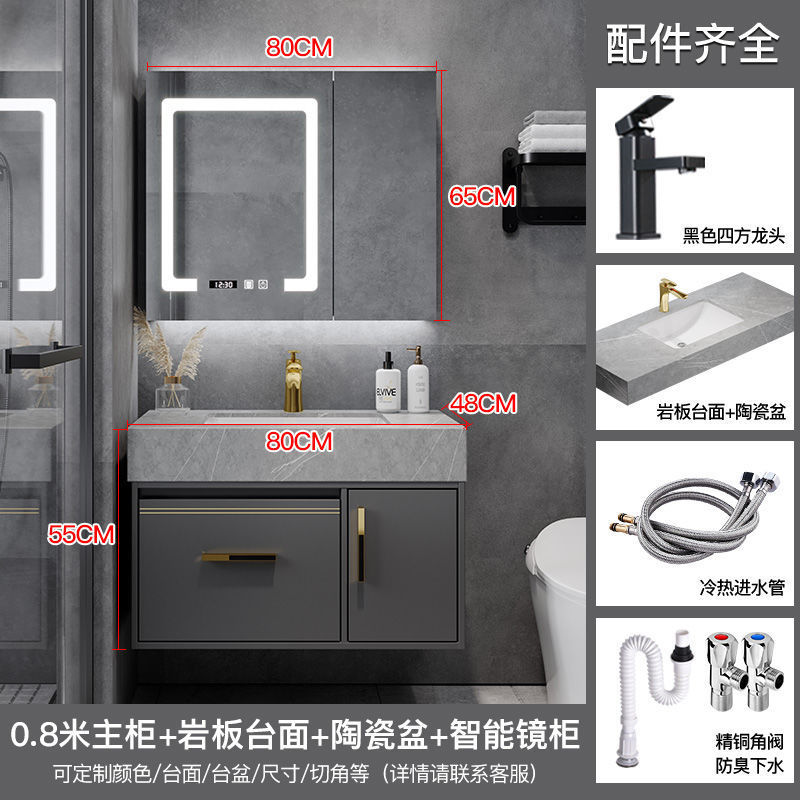现代简约灰色浴室柜组合岩板一体盆卫生间洗漱台洗脸盆洗手盆
