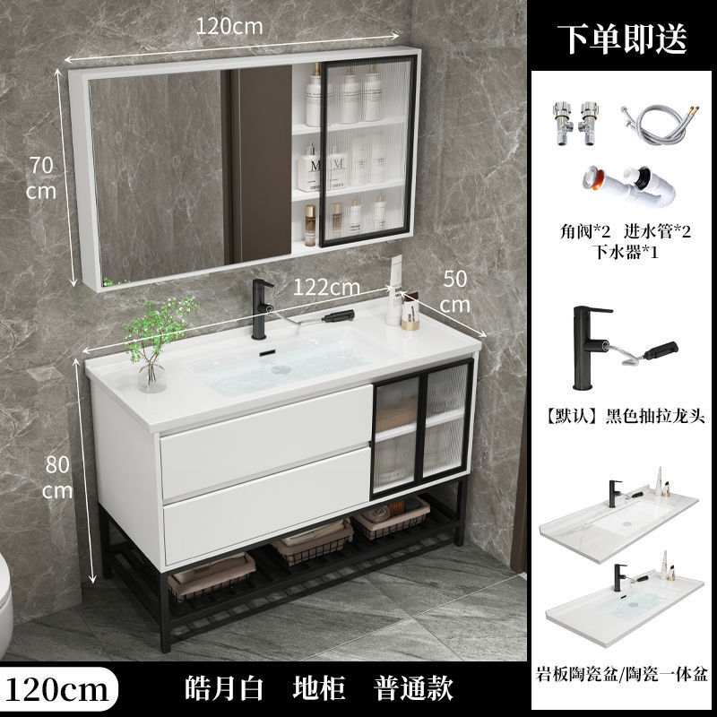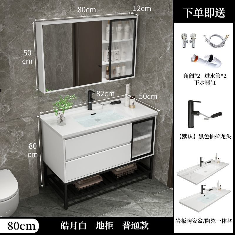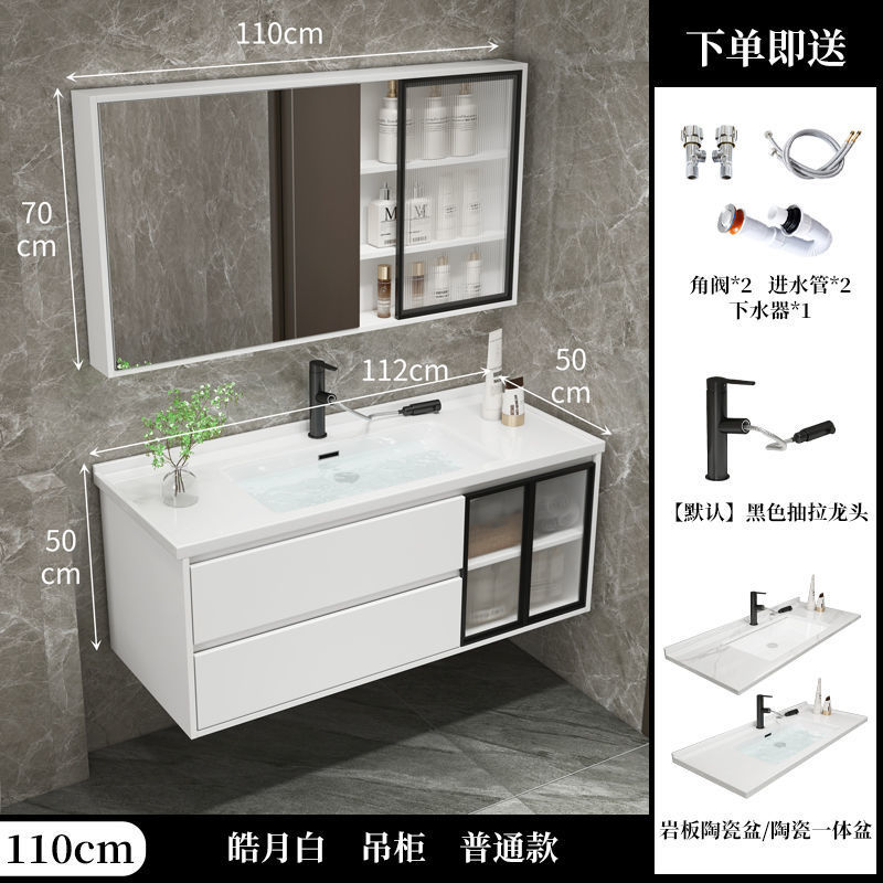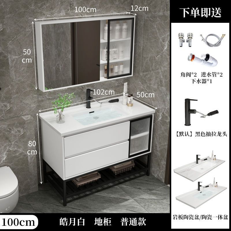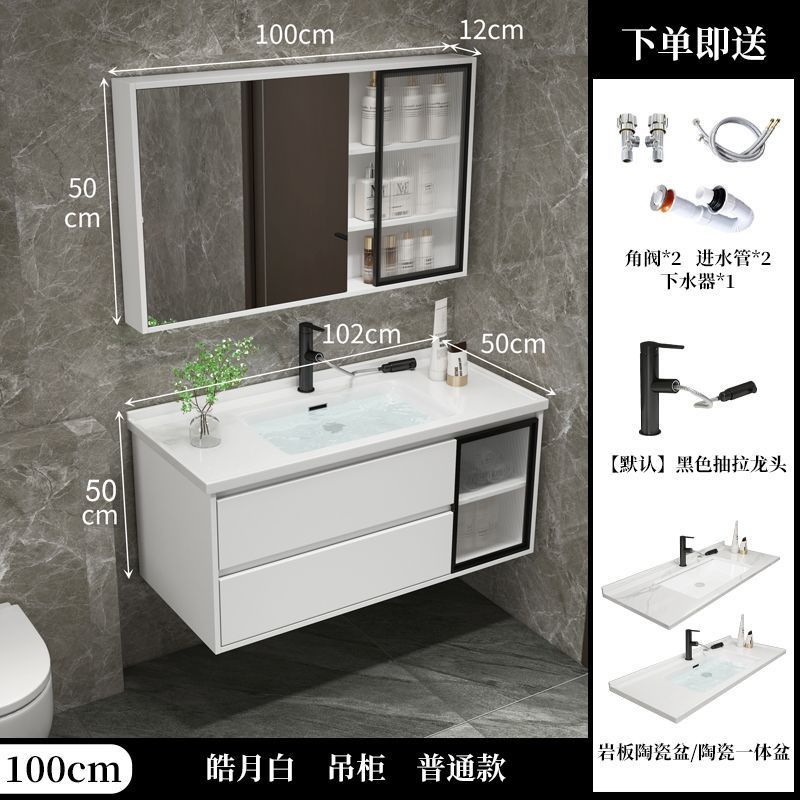 现代轻奢智能浴室柜组合卫生间陶瓷一体洗漱台岩板洗手洗脸盆套装