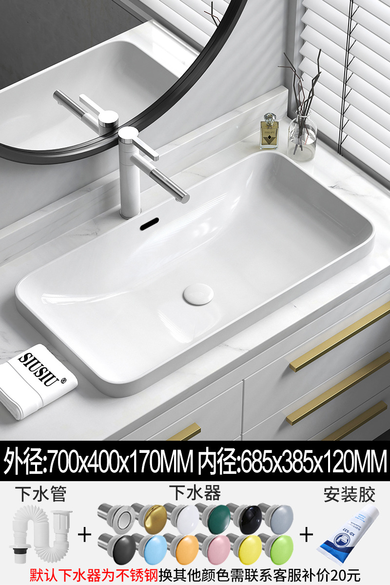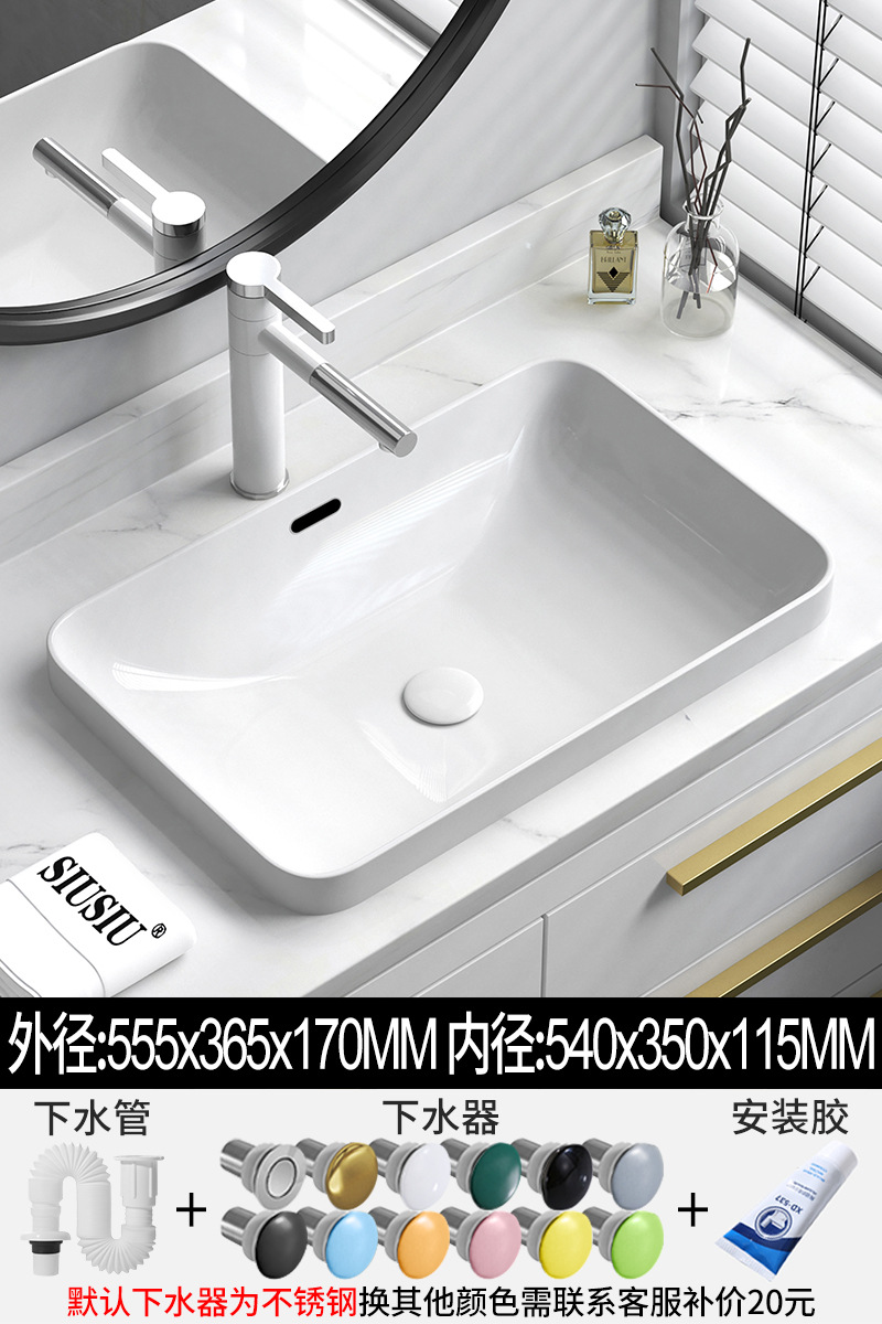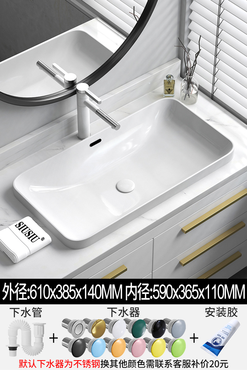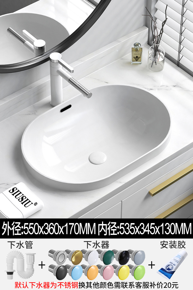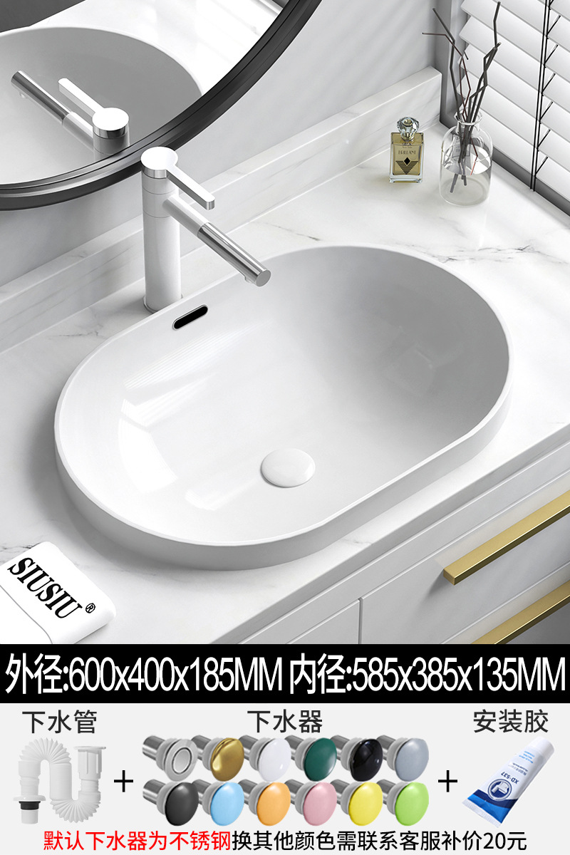 批发半嵌入式台上盆台中盆长方形陶瓷洗手洗脸池椭圆洗漱面盆白色