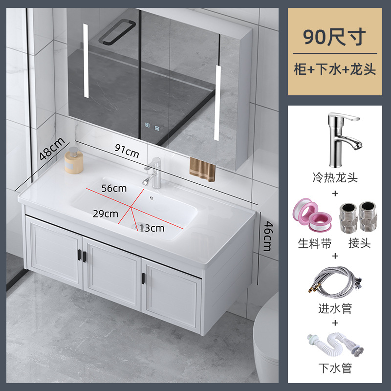【白吊柜】90CM新款盆+龙头+普通镜柜