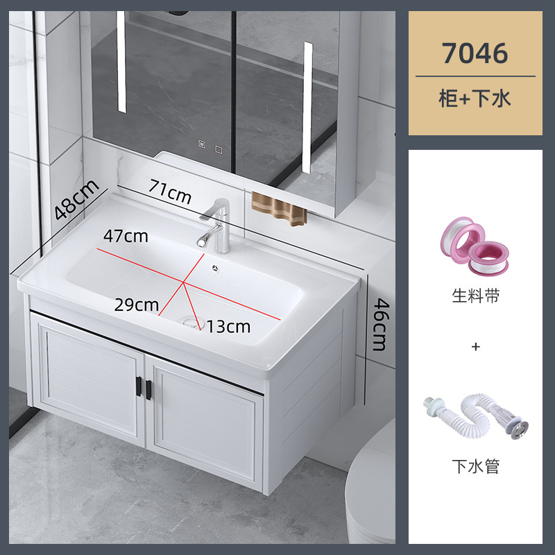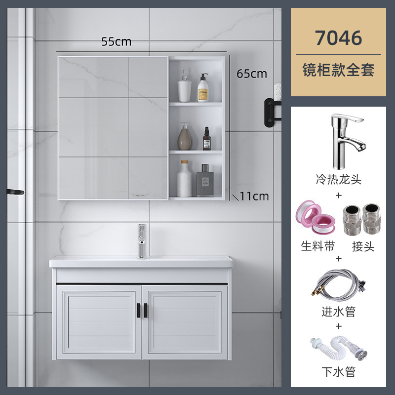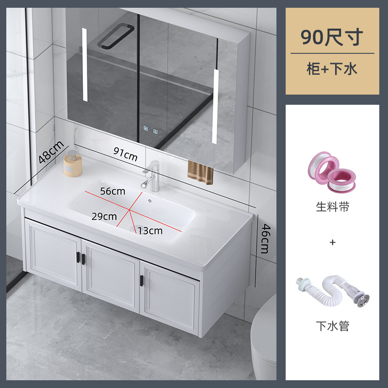 新款挂墙式组合镜柜现代简约陶瓷浴室柜卫生间太空铝洗漱洗手盆