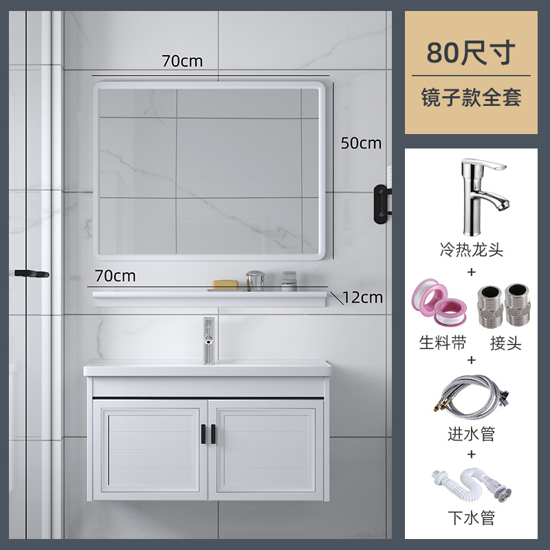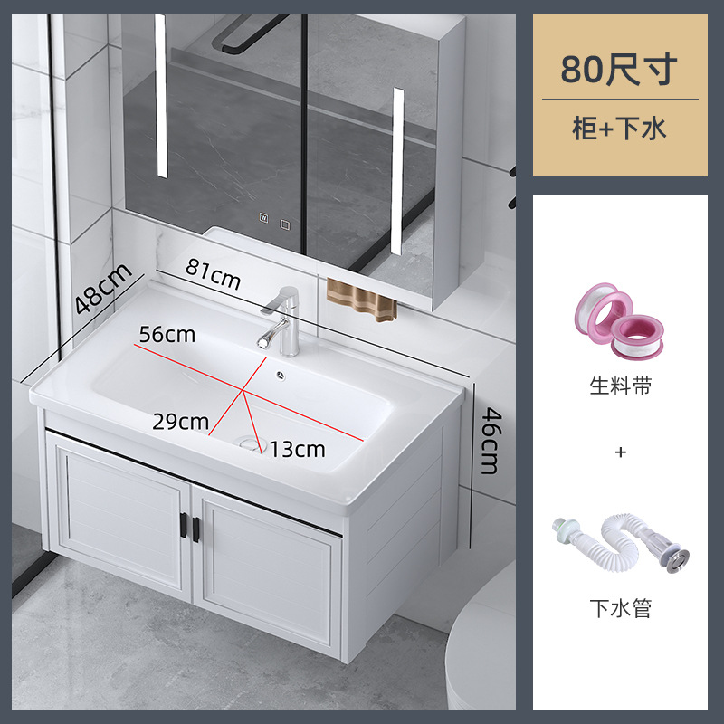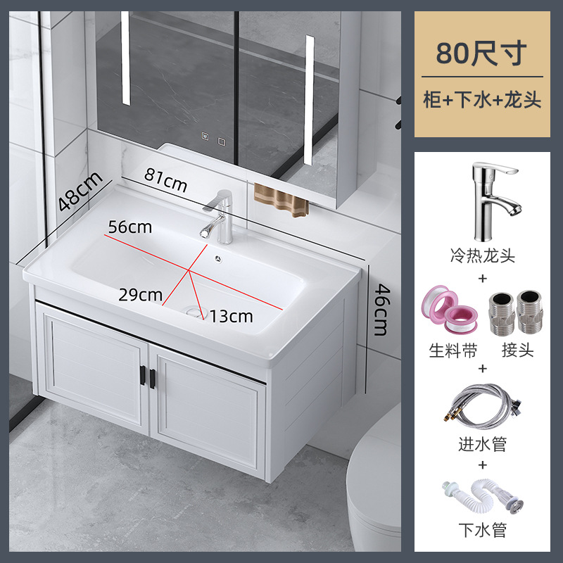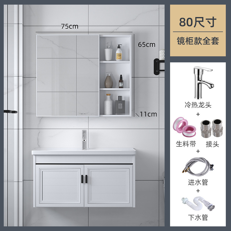 【白吊柜】80CM新款盆+龙头+普通镜柜