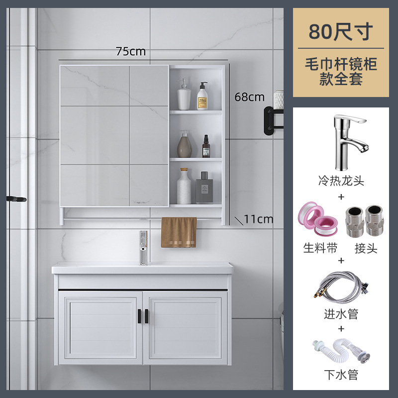 【白吊柜】80CM新款盆+龙头+毛巾杆镜柜