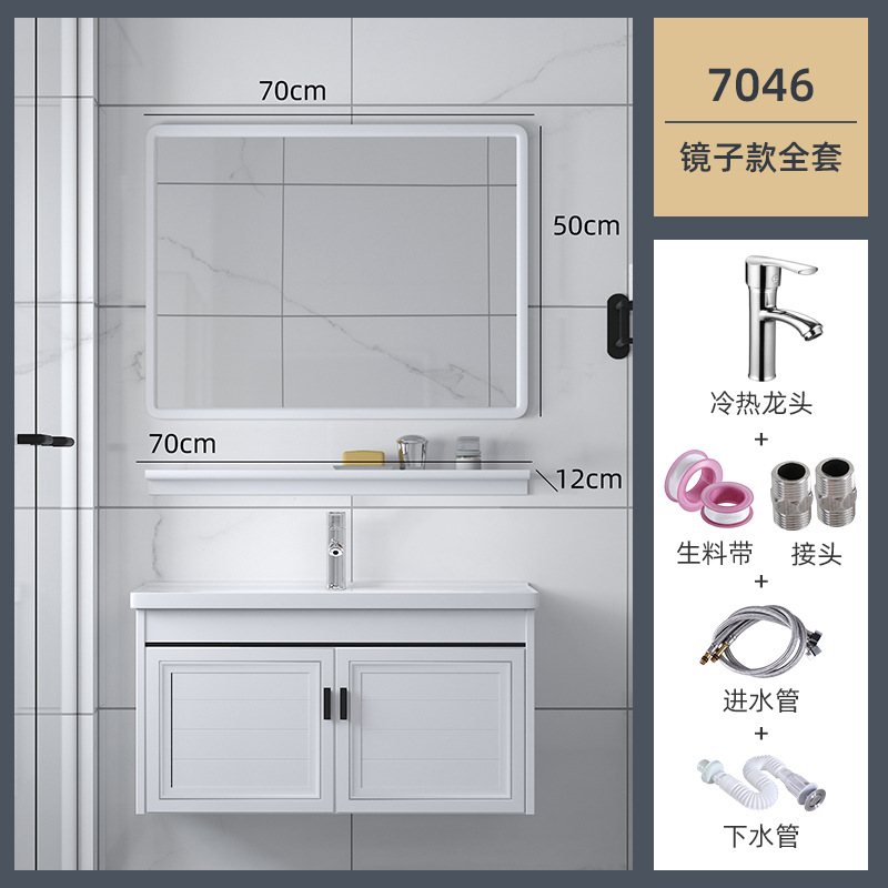 【白吊柜】70CM新款盆+龙头+普通镜柜
