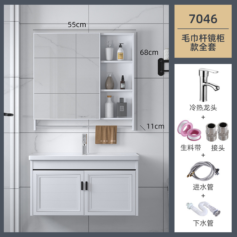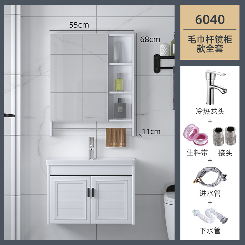 【白吊柜】6040CM新款盆+龙头+毛巾杆镜柜