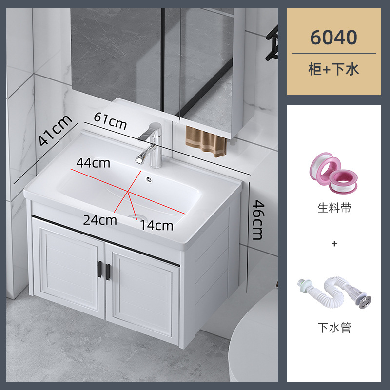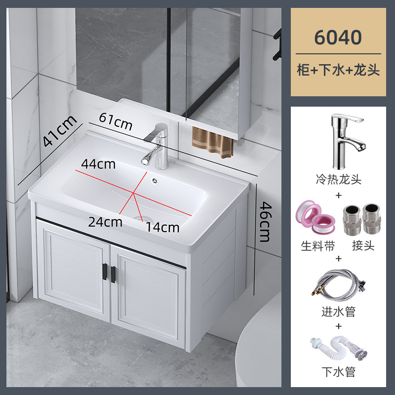 【白吊柜】6040CM新款盆+龙头+普通镜柜