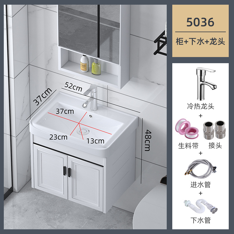 【白吊柜】5030CM陶瓷盆+龙头+普通镜柜