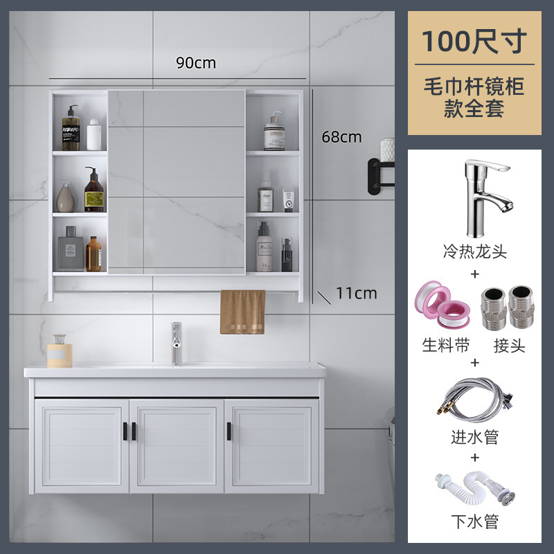 【白吊柜】100CM新款盆+龙头+毛巾杆镜柜