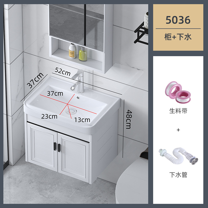 【白吊柜】5030CM陶瓷盆+龙头下水