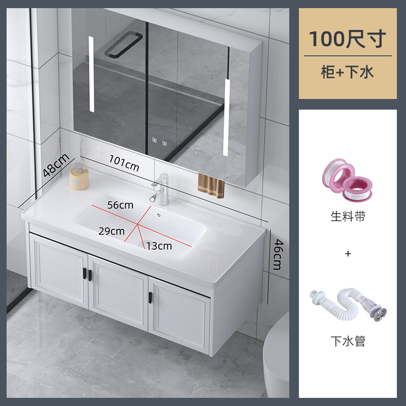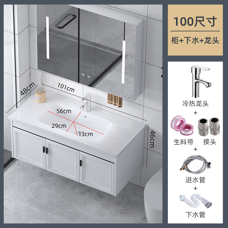 【白吊柜】100CM新款盆+龙头+普通镜柜