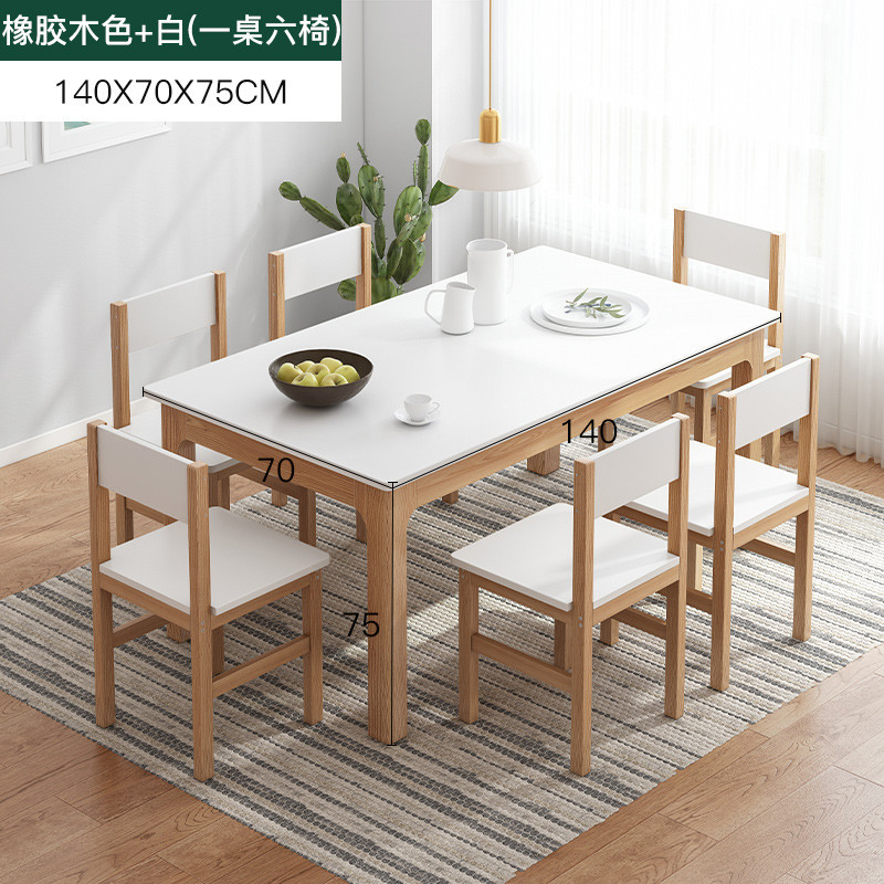 140cm一桌六椅暖白色:实木桌腿 稳定支撑