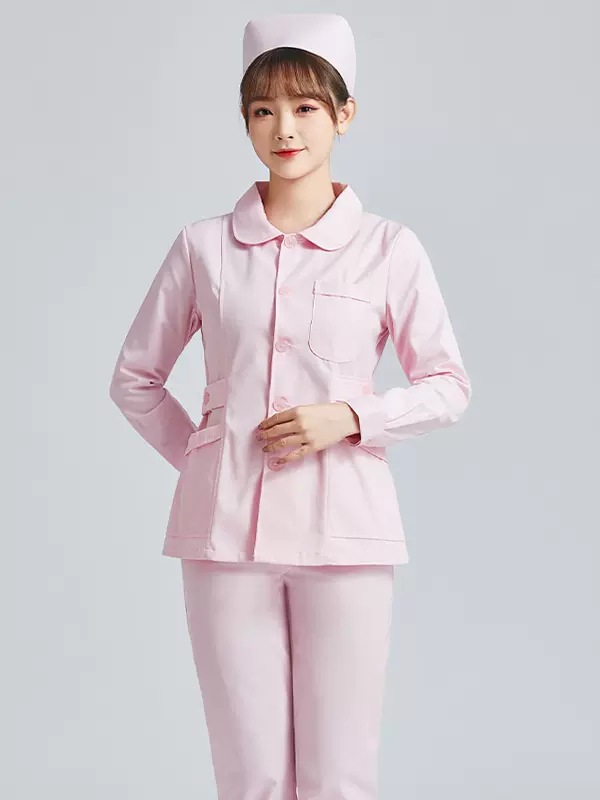 西服领粉色长袖套装:S