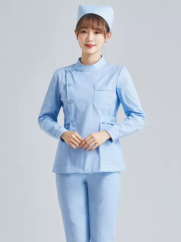 西服领蓝色长袖套装:L