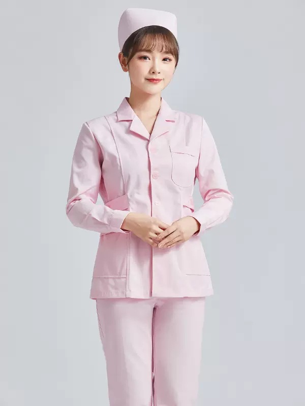 西服领粉色长袖套装:M