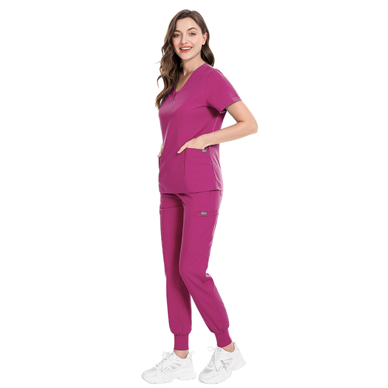 工厂直销V领分体手术服套装女医院弹力刷手服护士短袖工作衣印字