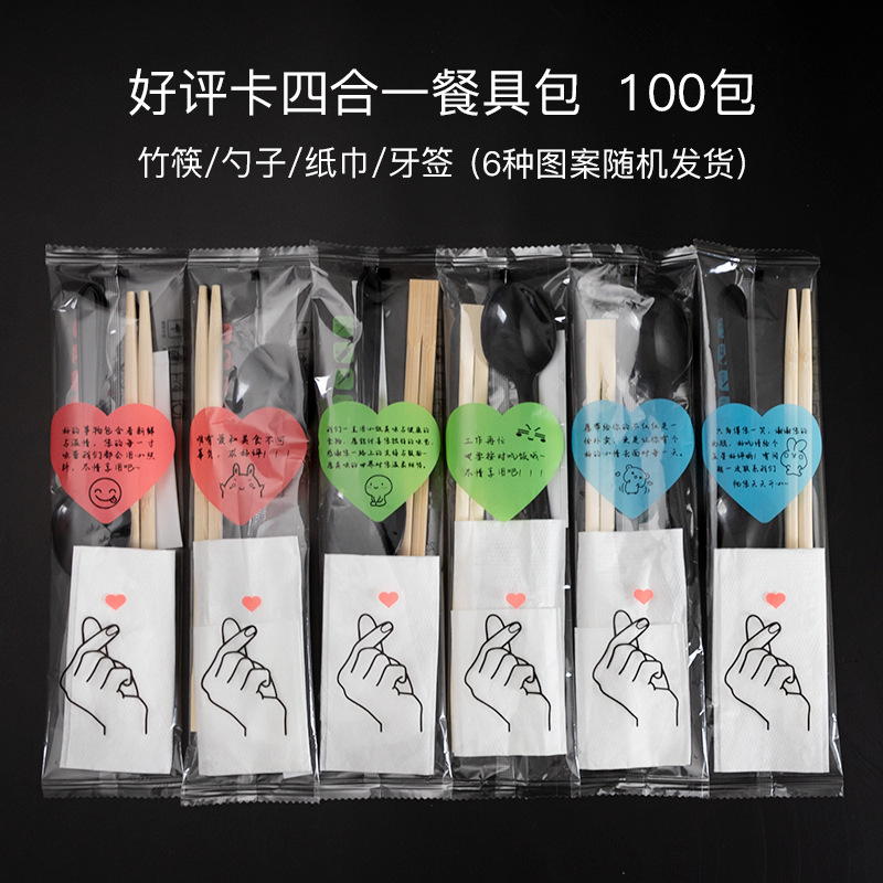 喇叭花一次性餐具包筷子勺子纸巾套装餐具4件套四合一100套批发