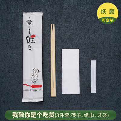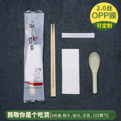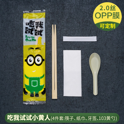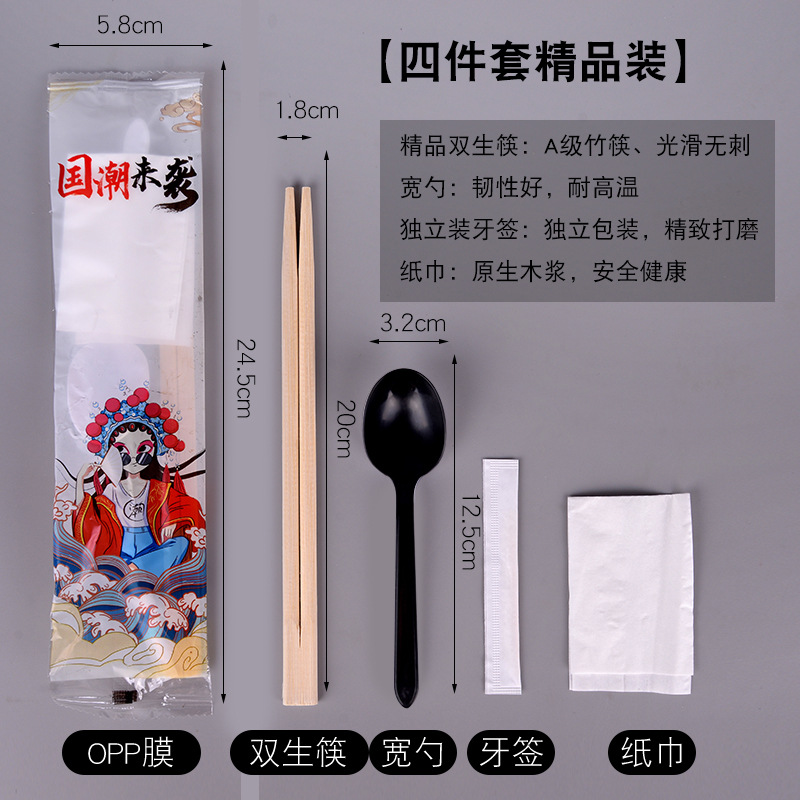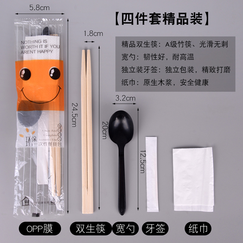一次性筷子四件套勺子纸巾牙签餐具四合一快餐外卖打包三件套批发