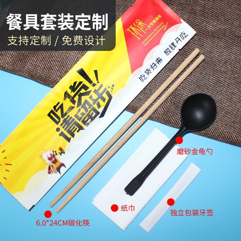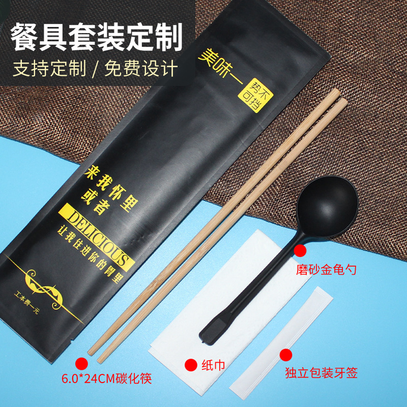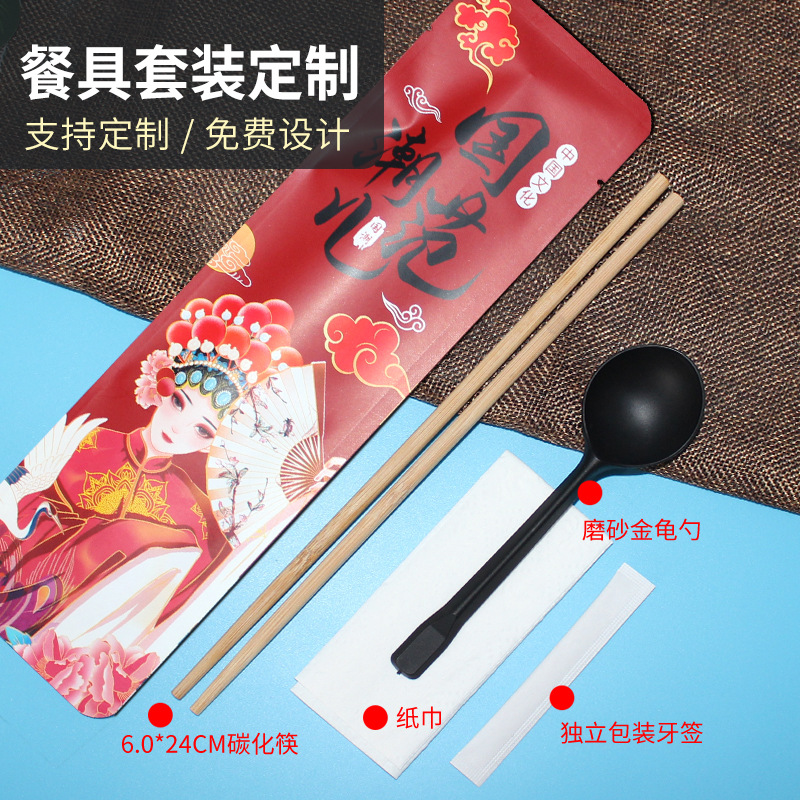国潮风一次性筷子四件套餐饮外卖一次性餐具套装一次性筷子批发