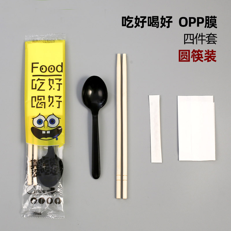 批发一次性筷子四件套打包筷牙签纸巾勺四合一外卖餐具包套装