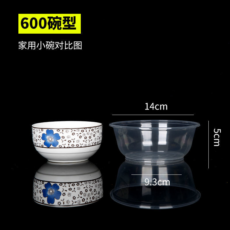 圆形一次性碗批发塑料碗餐盒外卖打包盒透明汤碗家用碗筷套装带盖