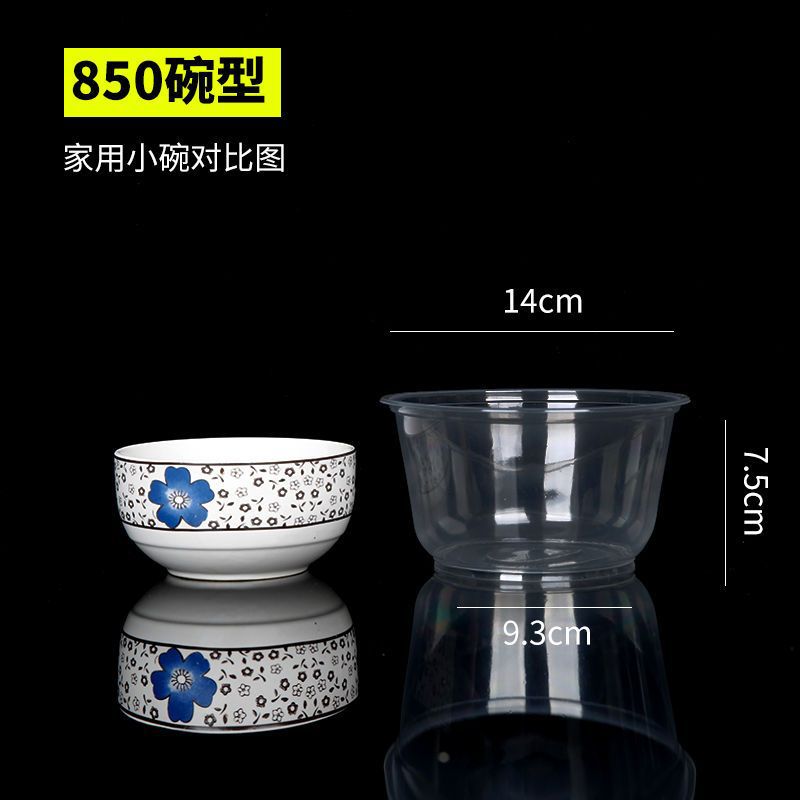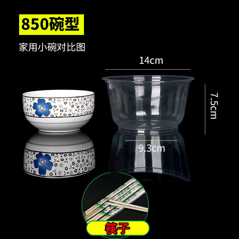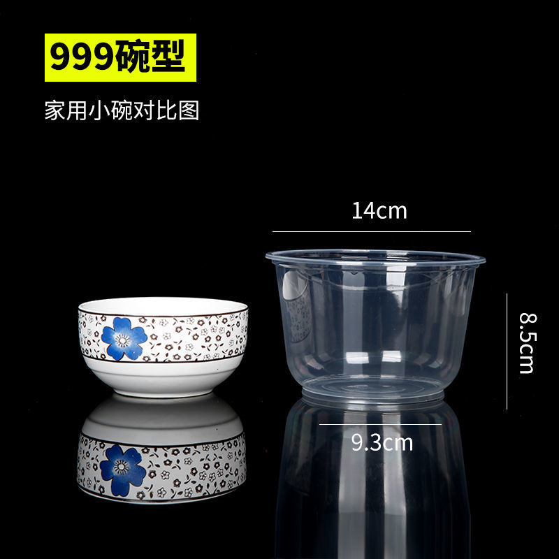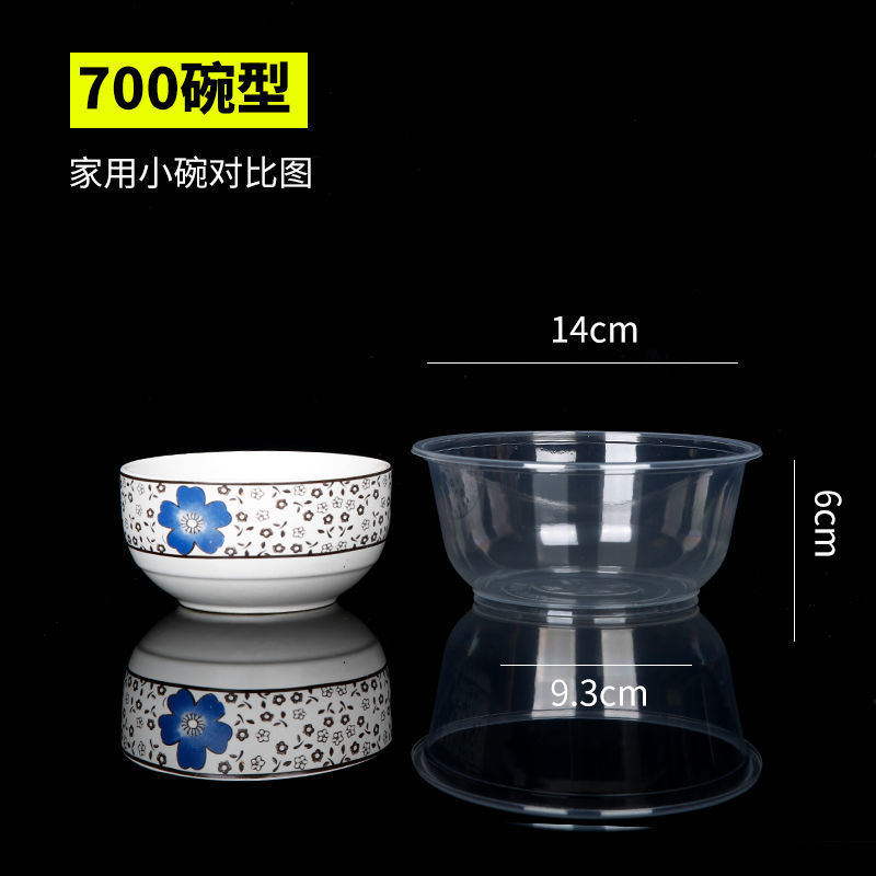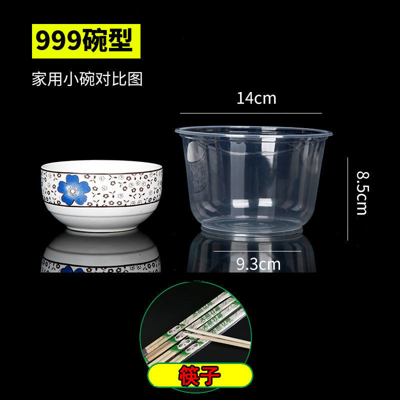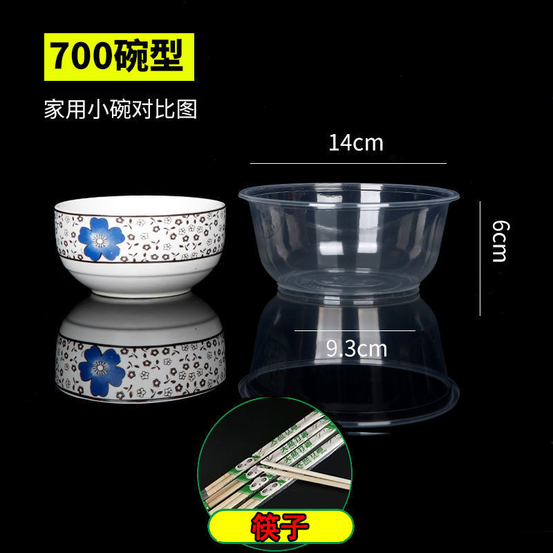 圆形一次性碗塑料碗餐盒外卖打包盒透明汤碗家用碗筷套装带盖
