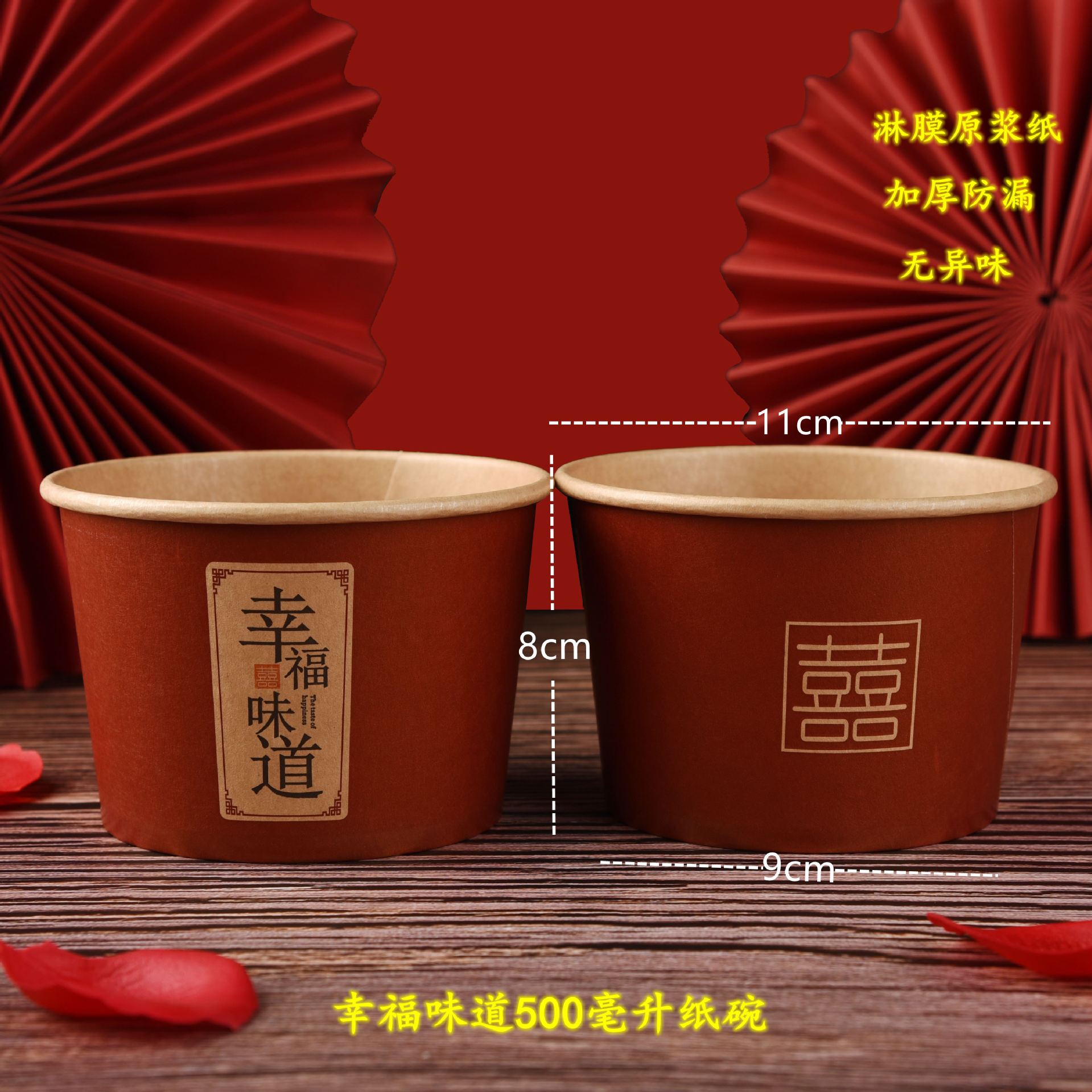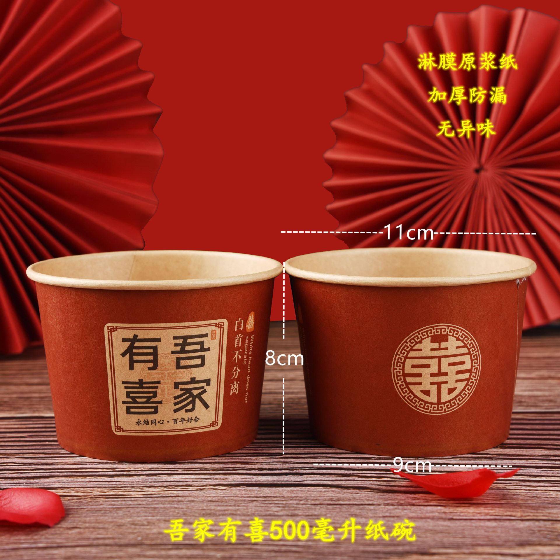 本色吾家有喜纸碗50只/500毫升