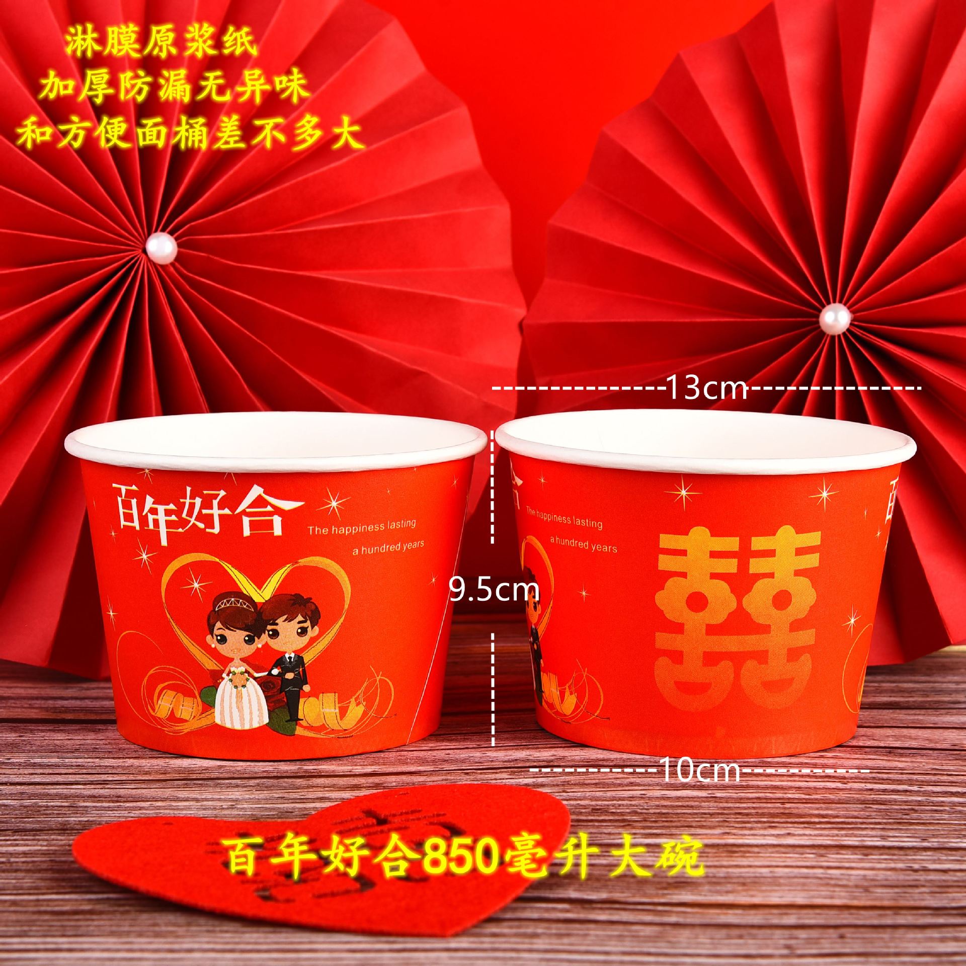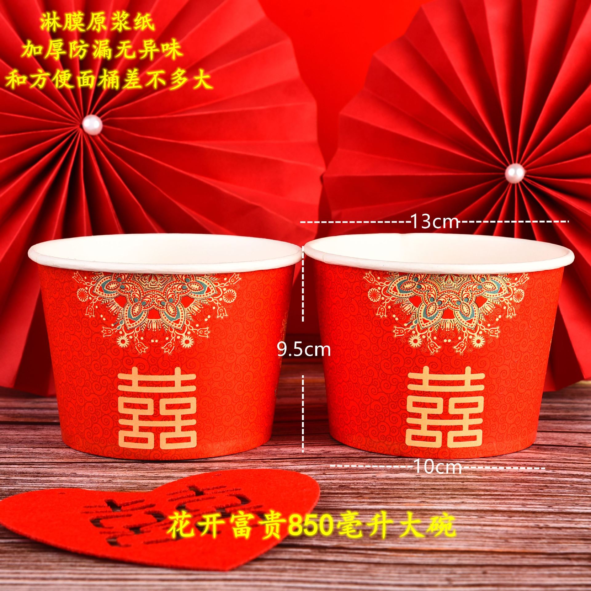 结婚用喜碗加厚红色喜碗婚礼酒席碗筷一次性餐具套装整箱圆形纸碗