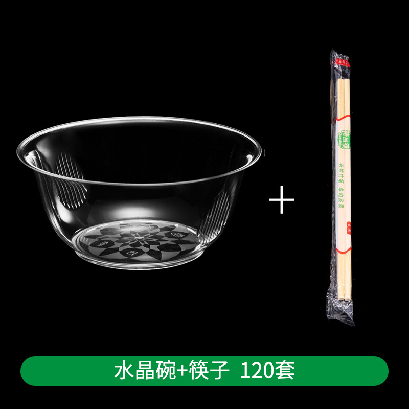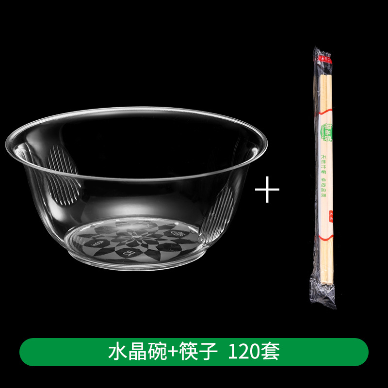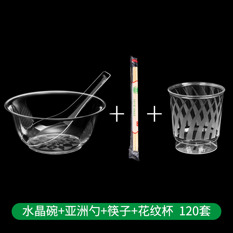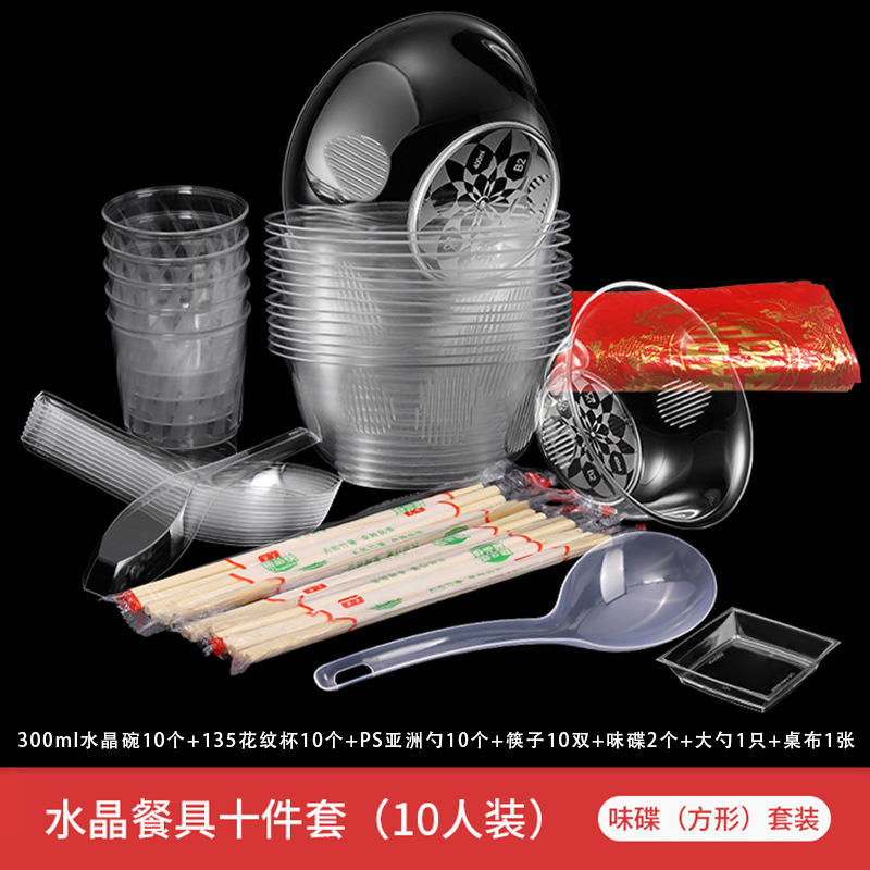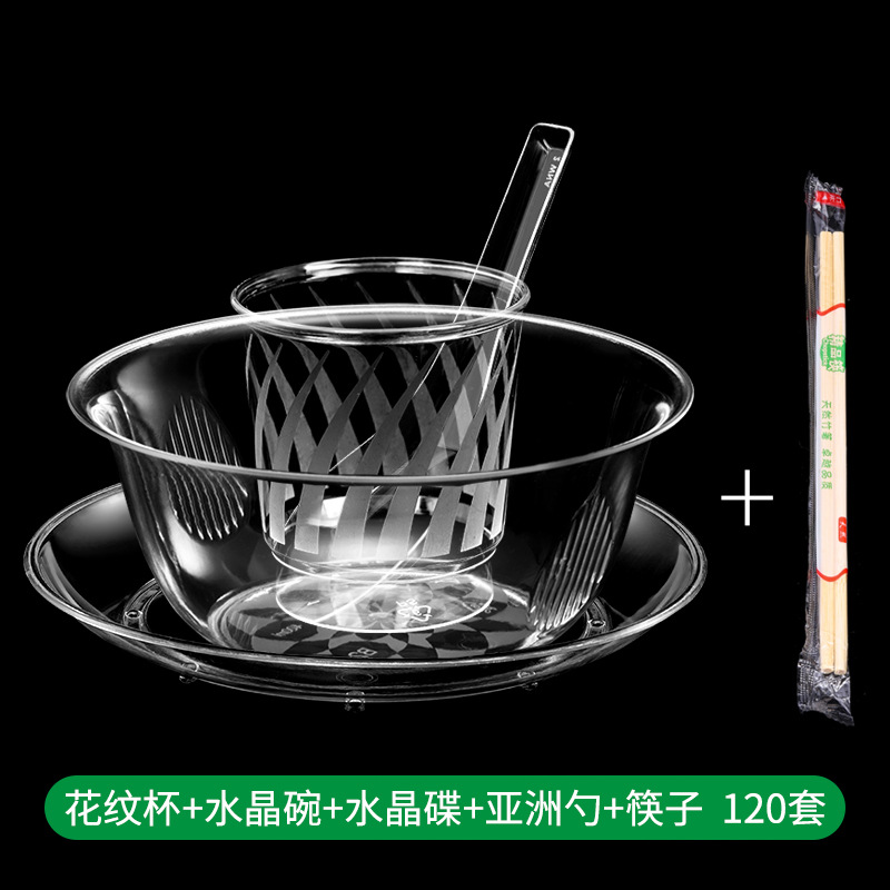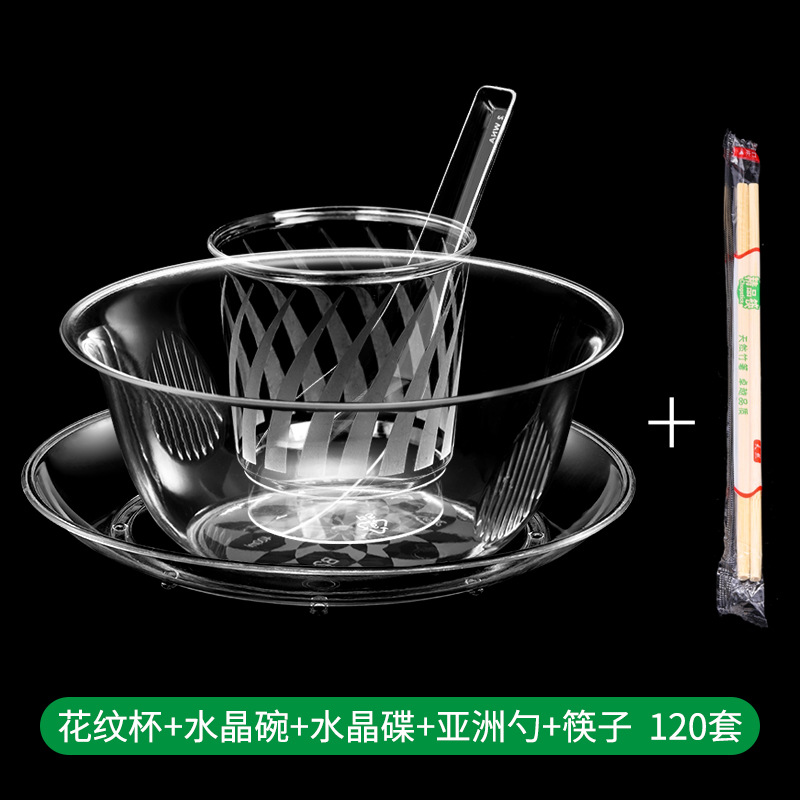 一次性水晶碗家用餐具硬塑料透明航空火锅汤碗酒席碗筷食品级套装